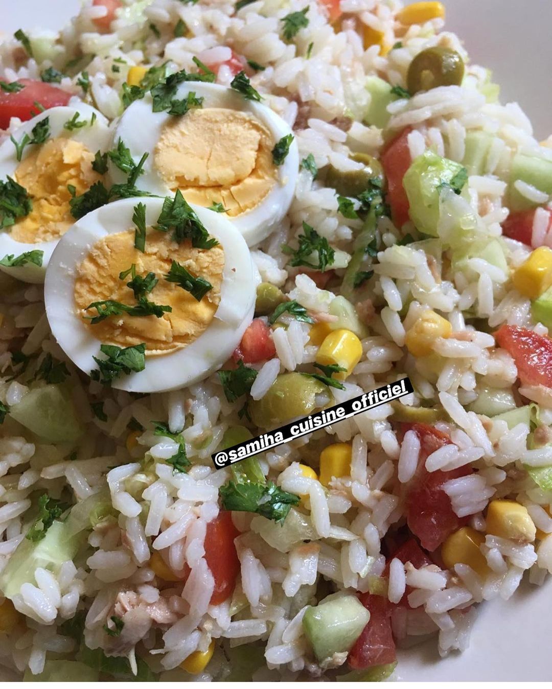 نخلط كل المكونات مع بعض و نثبلها و يقدم الطبق للعشاء مزين بالبيض المسلوق