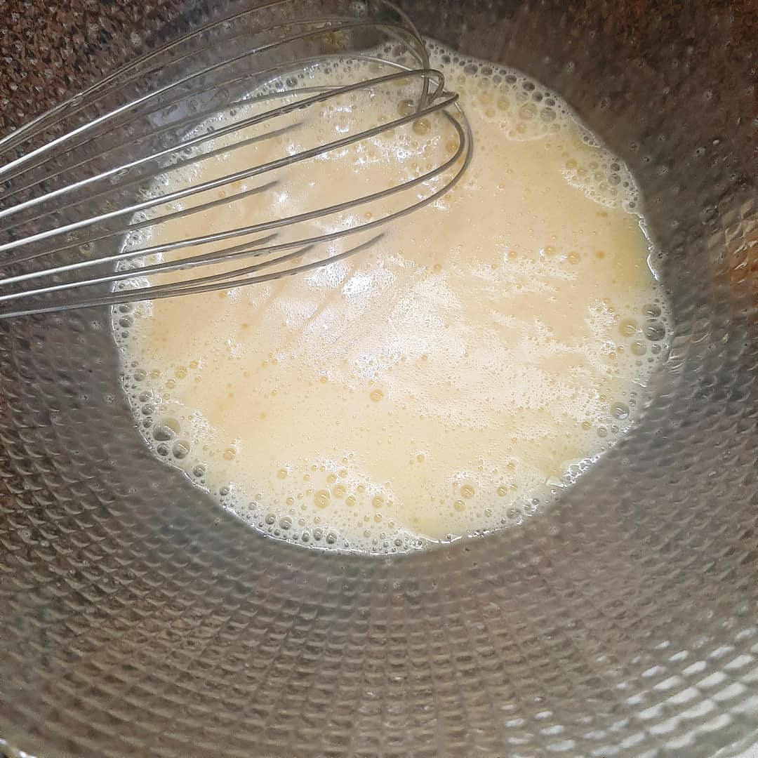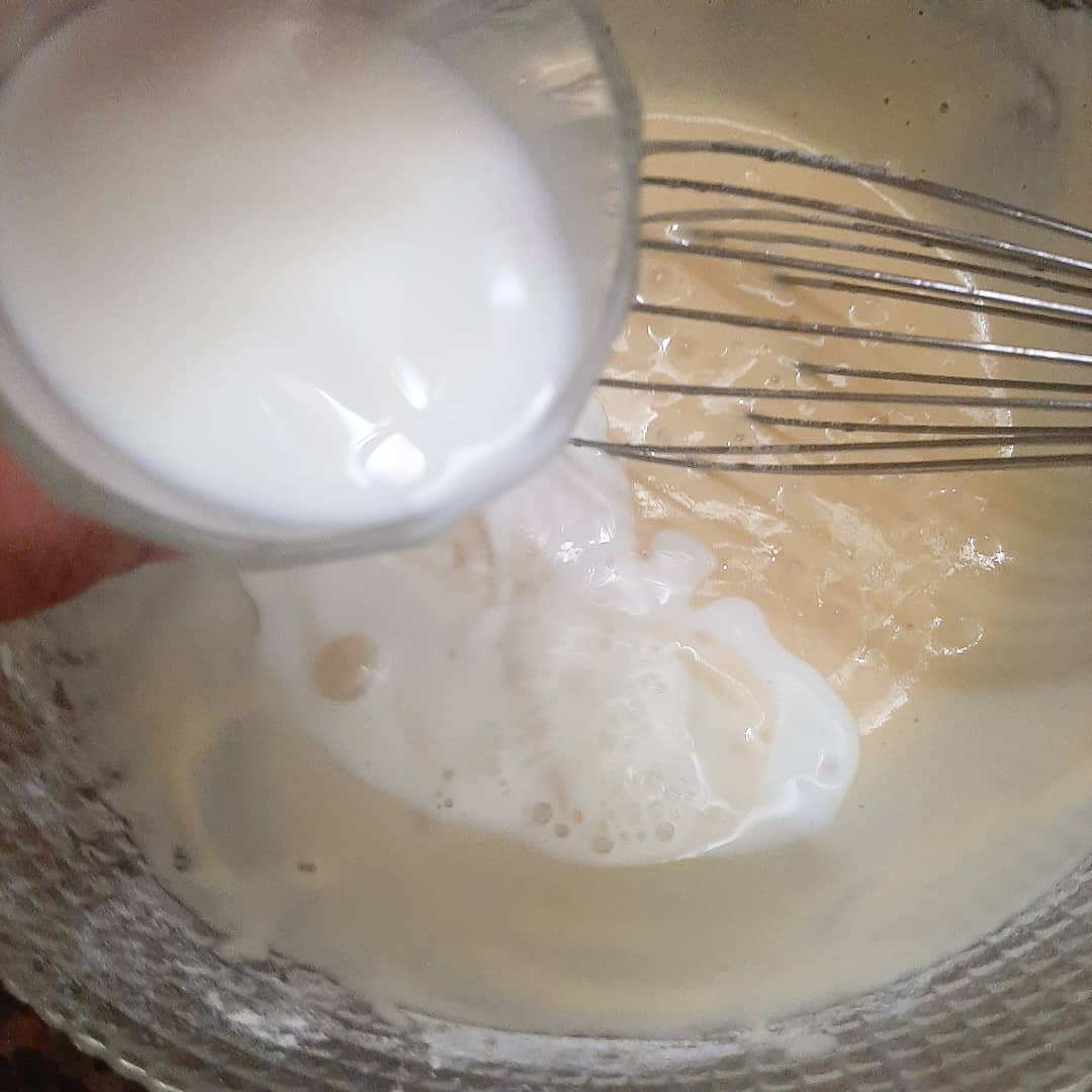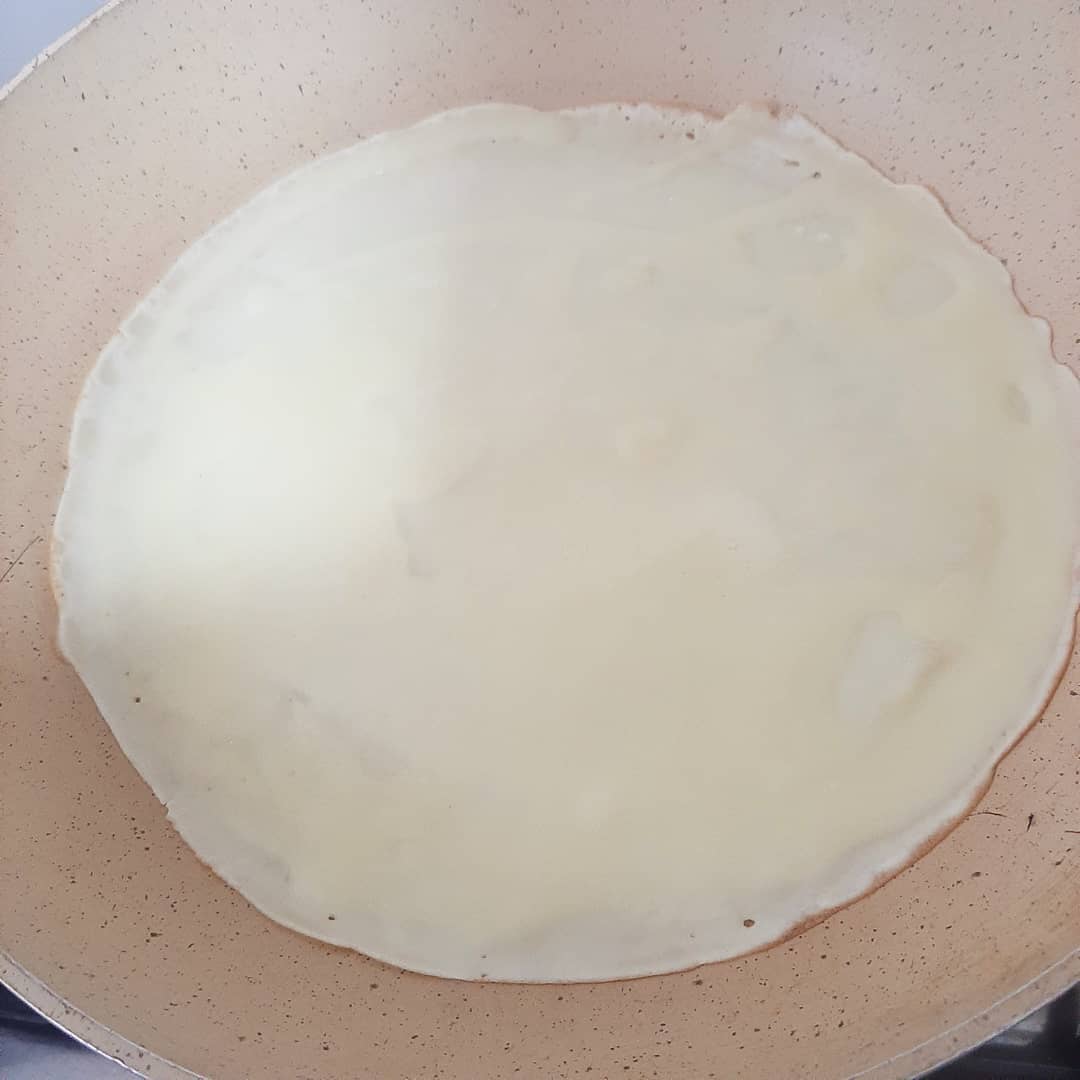 فإناء نخدم البيضة وسكر فاني وقبصة الملح جيدا تم نضيف نصف كاس حليب تم الدقيق ونخلط جيدا حتى ينسجم الخليط ونضيف كأس الحليب المتبقي ونخلط الكل جيدا نغطي الخليط ونتركه يرتاح 15 دقيقة ثم يطهى من الجهتين في مقلاة تيفال
