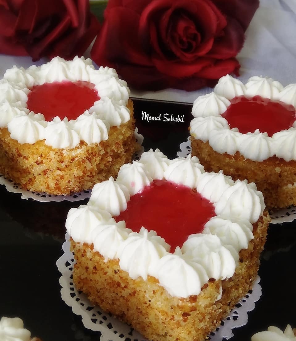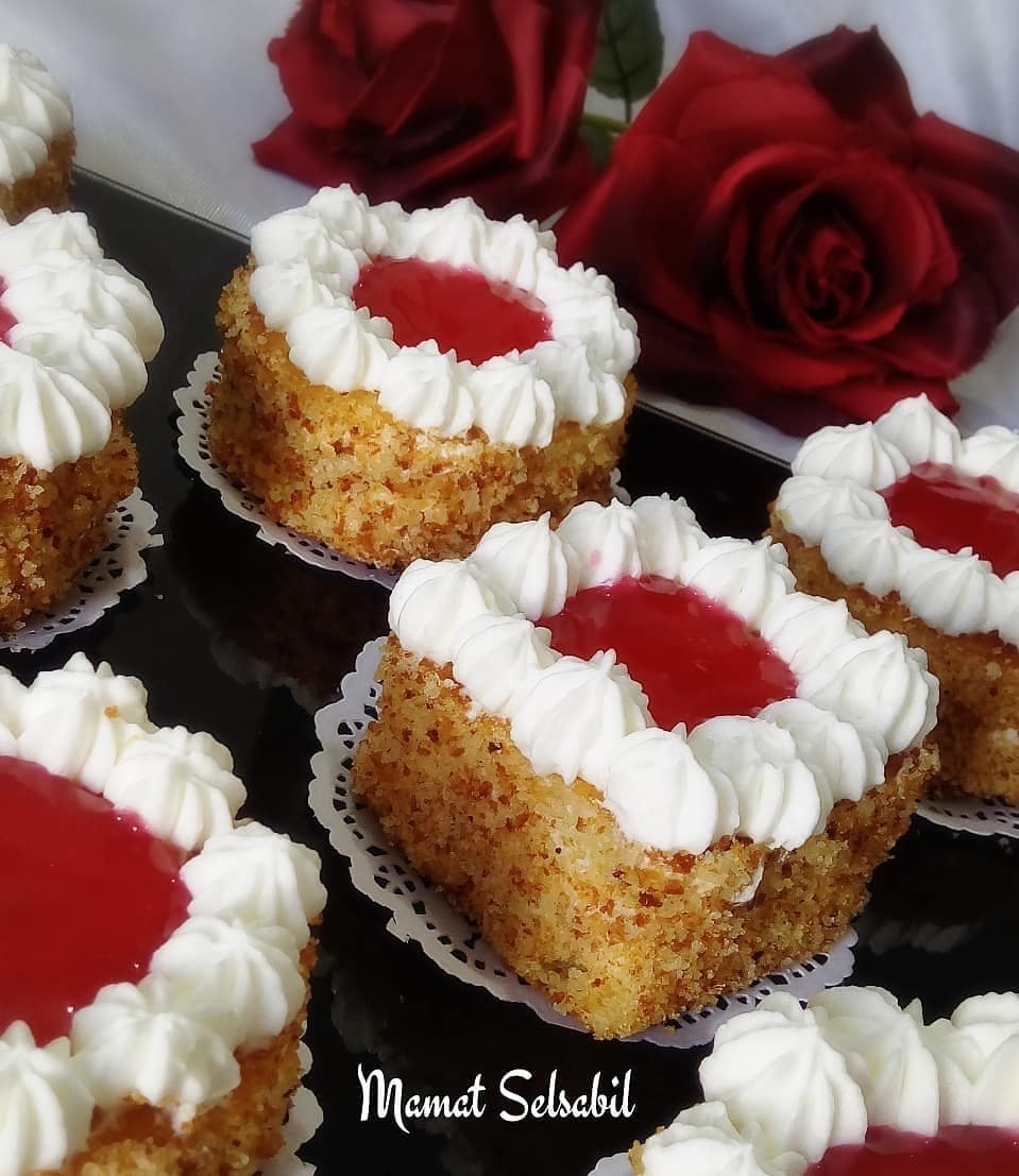 نترك الكيك حتى يبرد جيدا و نقطعه دوائر او مربعات كما هو واظح في الصور