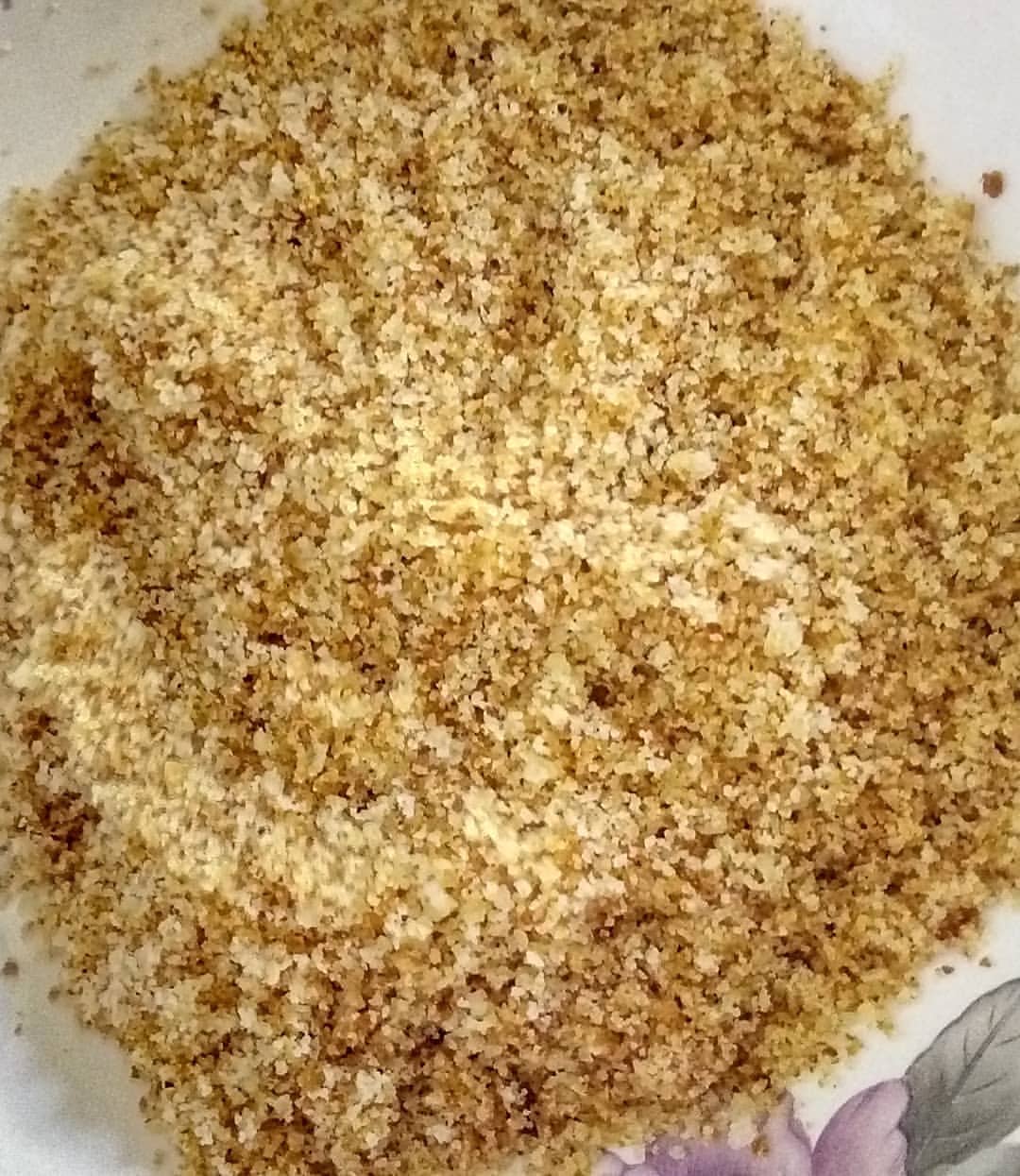 القطع المتبقية من الكيك نرجعها للفرن للتتحمر و نطحنها ثم نزين بها ميني تارت
