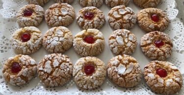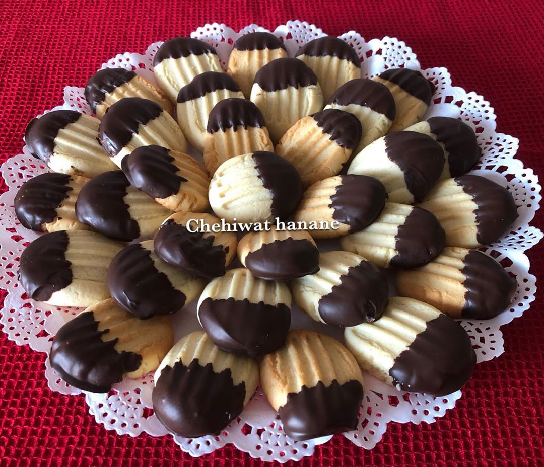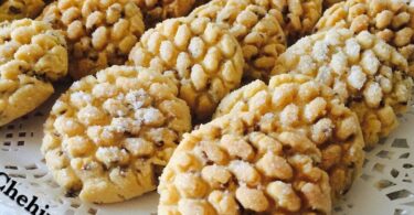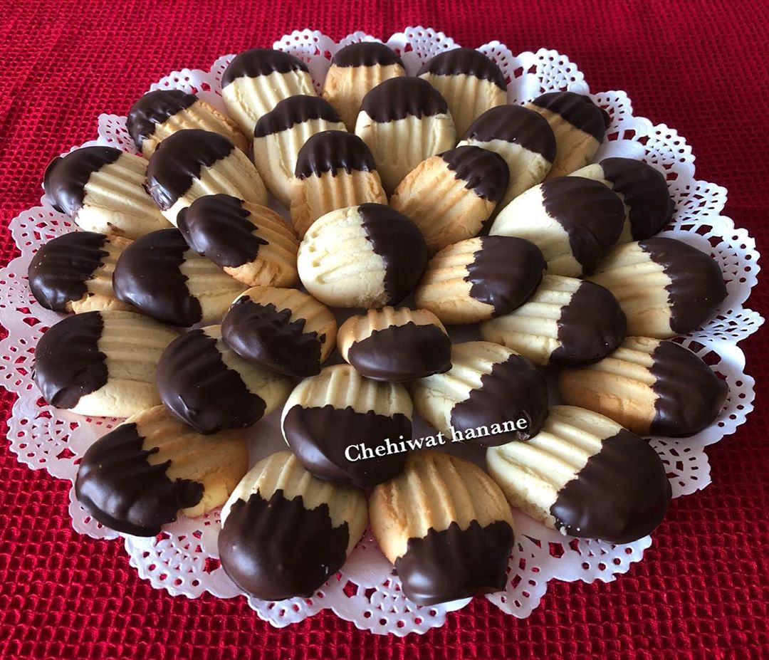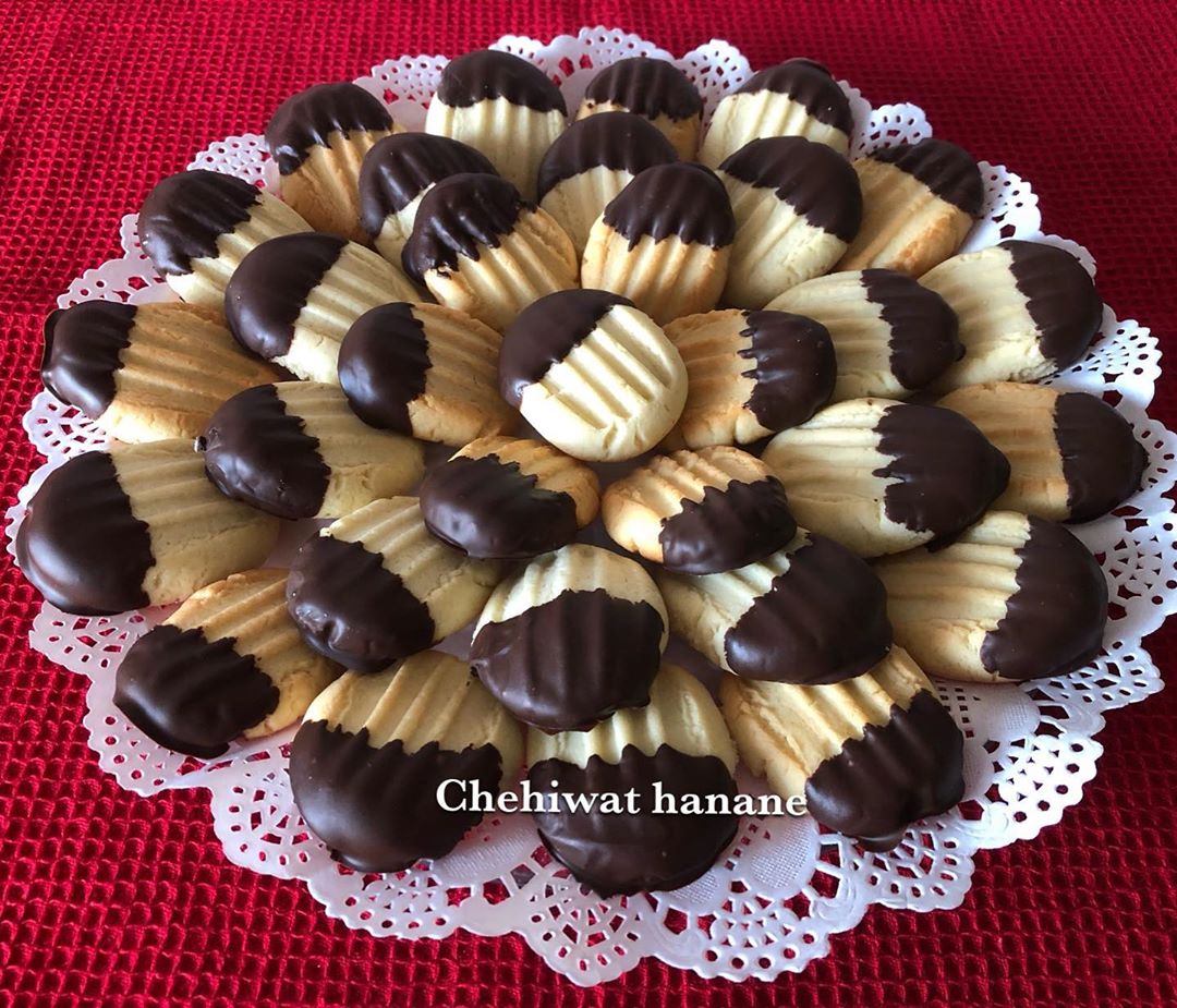 نخلط العناصر مع بعض للحصول على عجين رطب و لين. تشكل كرات متوسطة الحجم، نضغط عليها بفرشيط( لي نكونو دوزناها في الدقيق)، تدخل لفرن متوسط الحرارة