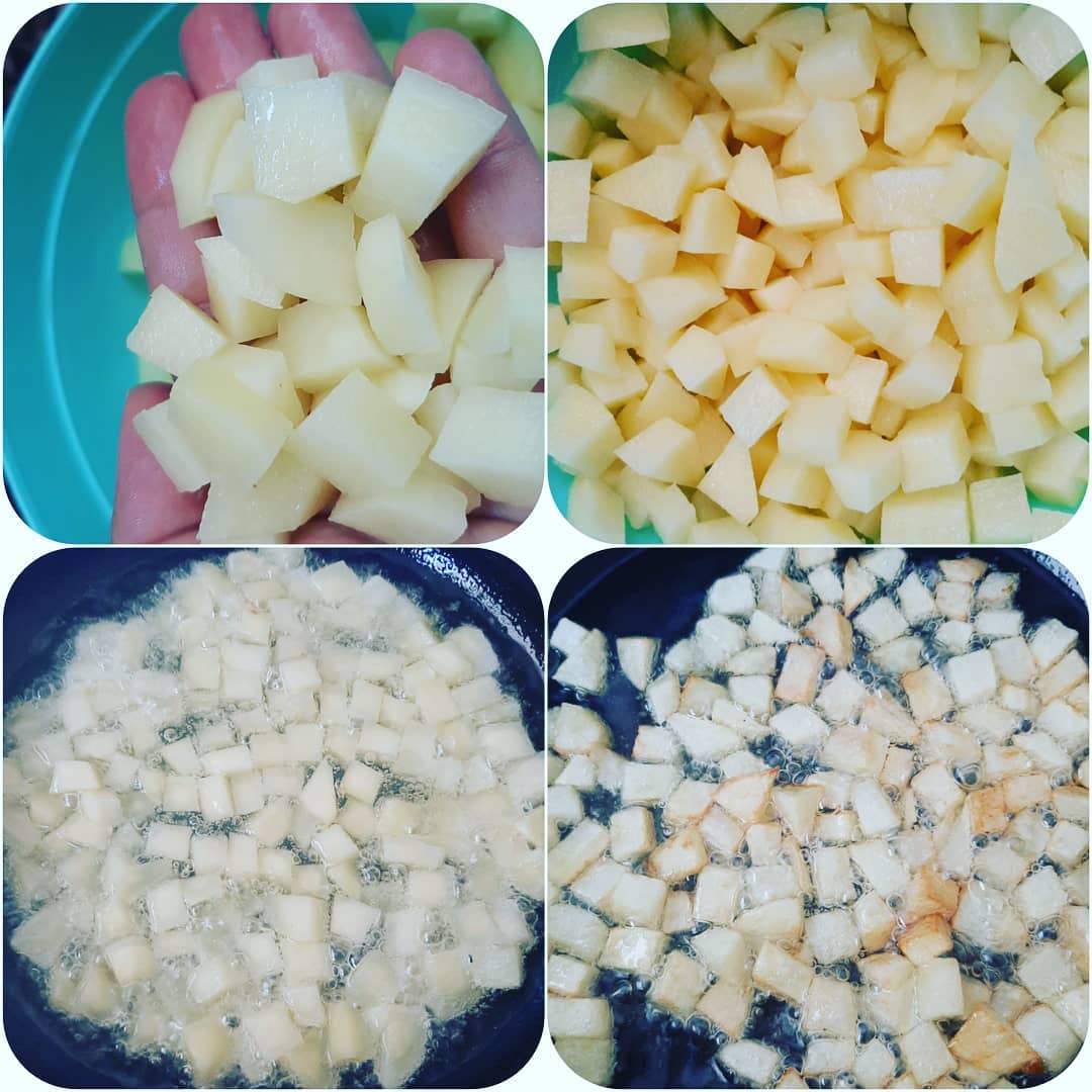 4بطاطات كبار قطعتهم مربعات صغيرة وقليتهم فالزيت