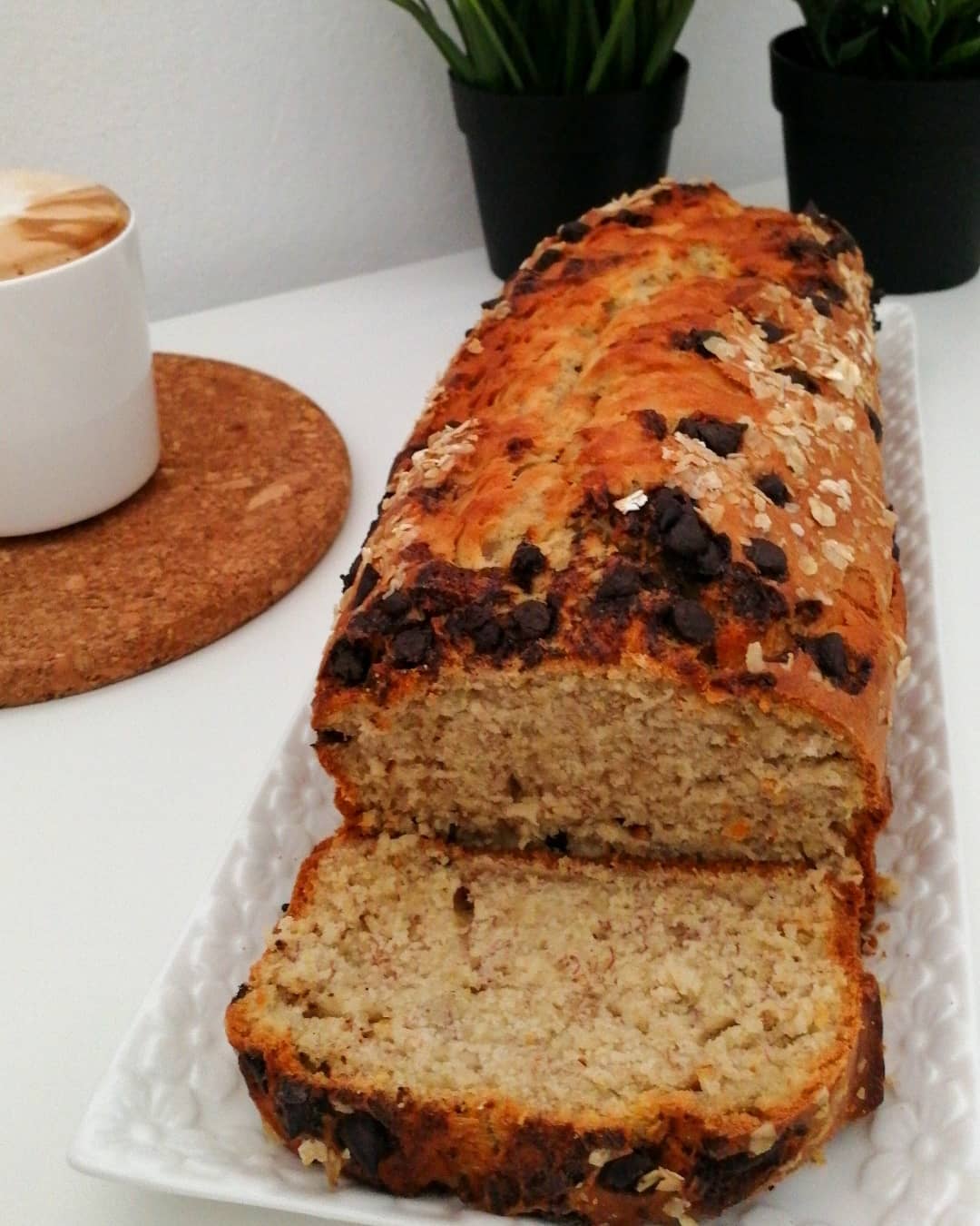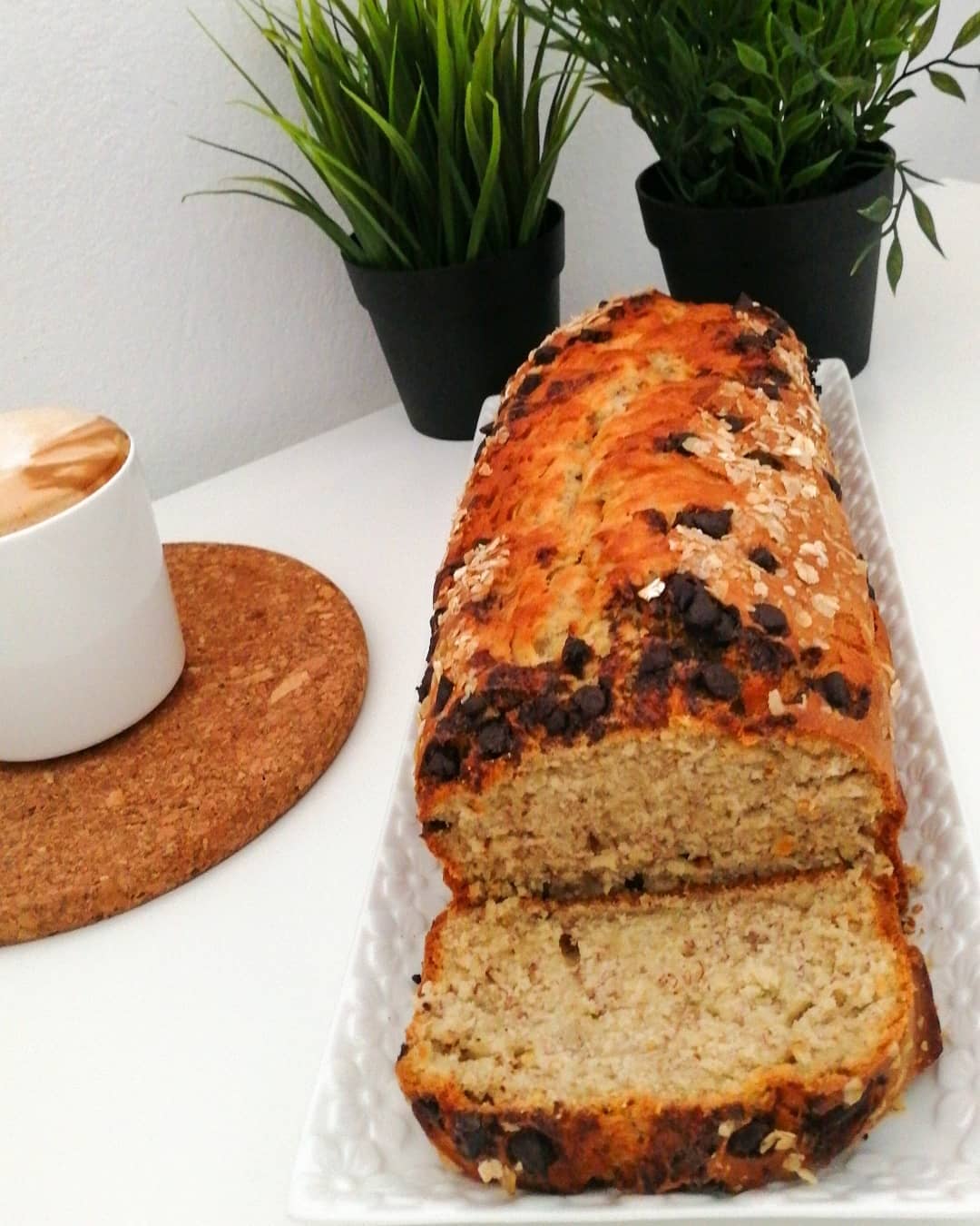 نخلط كل المقادير بالتتابع و نزين بحبيبات الشكلاط و الشوفان وندخلها للفرن