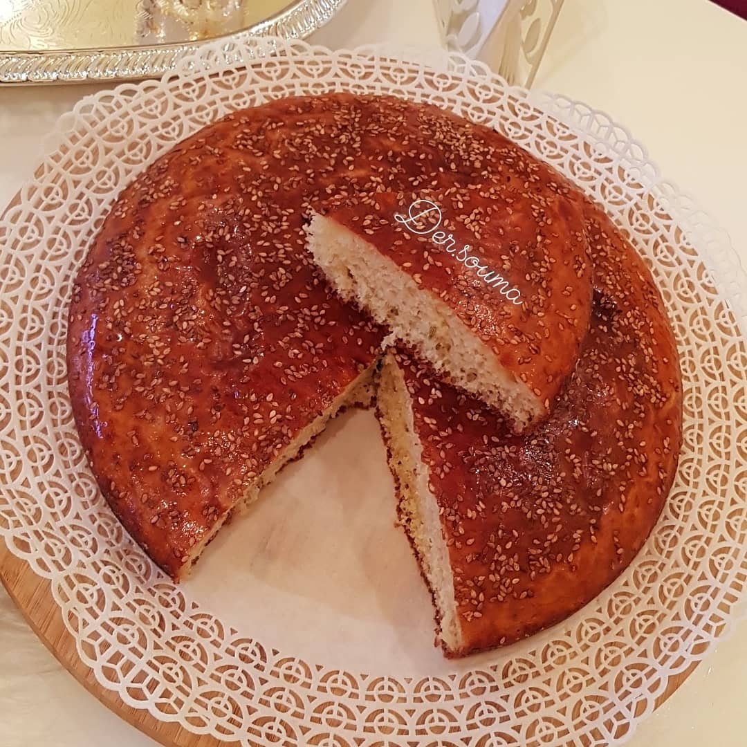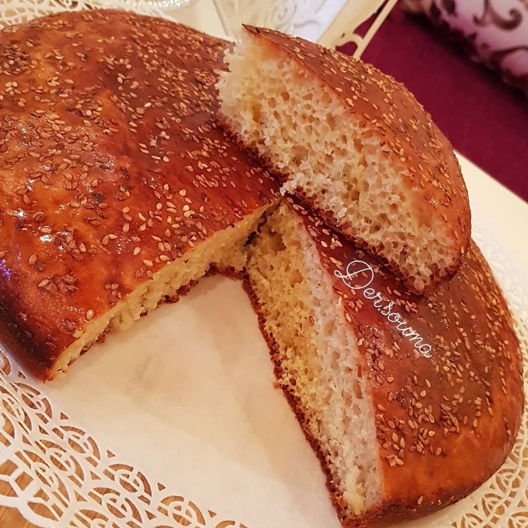 ندهن وجهه باصفر بيضة مخلطة مع القليل من قهوة سريعة الدوبان ونرش بالجنجلان نغطيها ثاني مرة مدة 5 إلى 10دقائق فقط ثم ندخلها لفرن ساخن من قبل على درجة 180 تدهن من فوق بالعسل بعد طهيه وبالصحة والراحة
