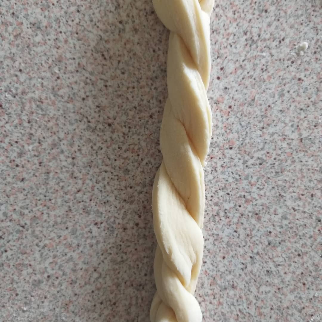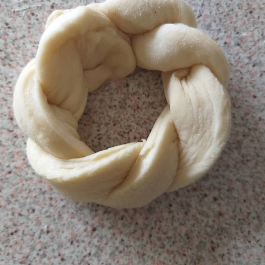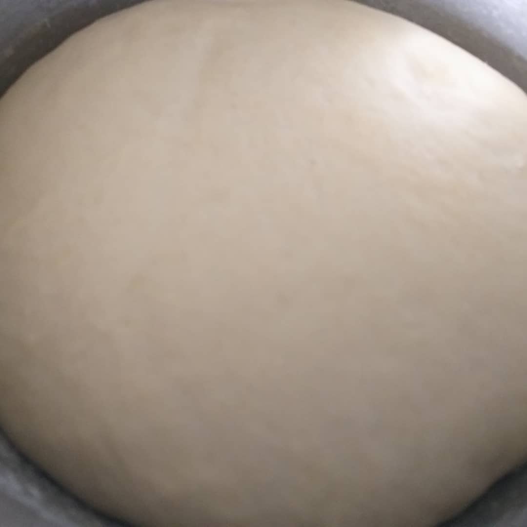 نجمع العجينة بالحليب دافي والعجينة تكون لينة ونخليها ترتاح وتيضاعف الحجم تعها واحد نصف ساعة