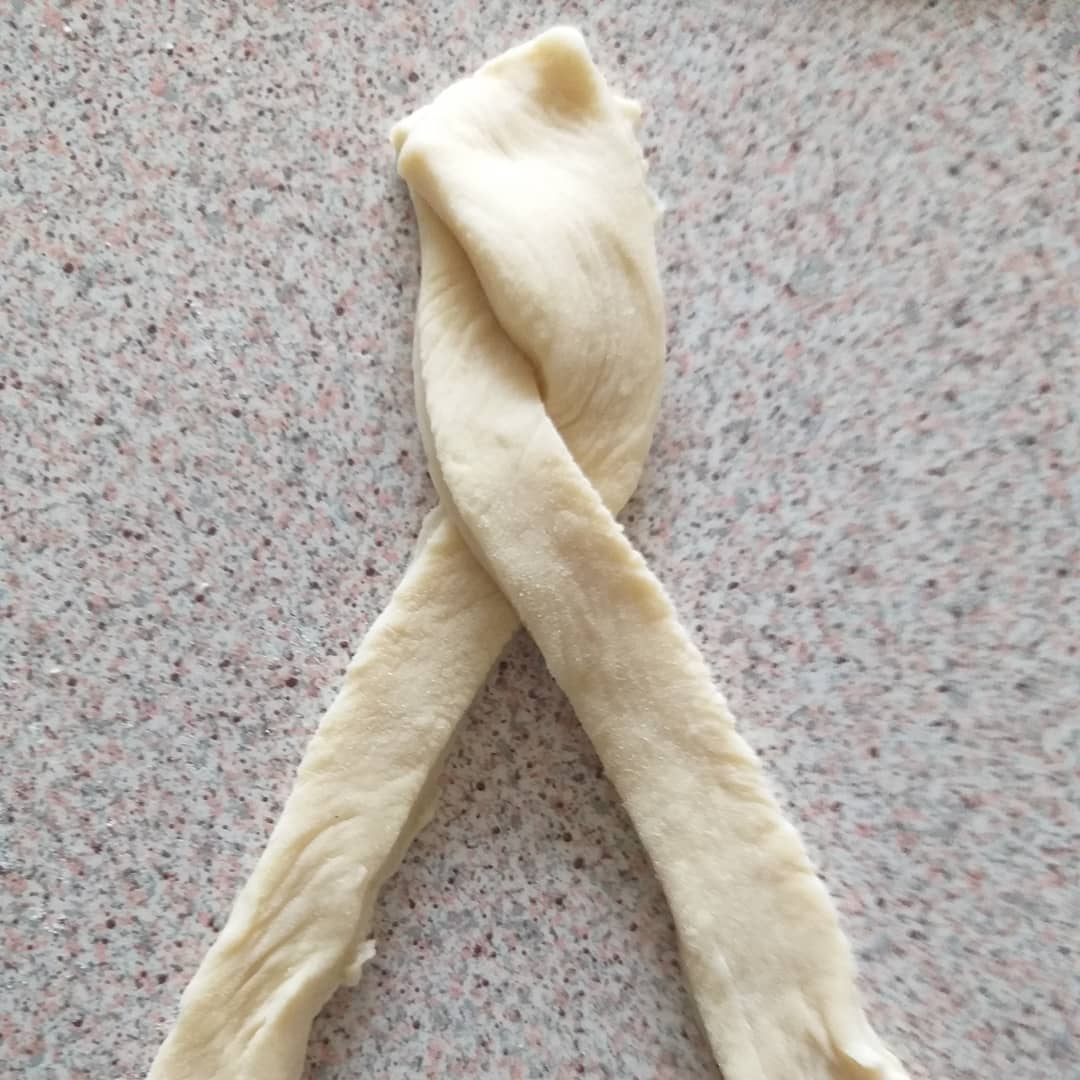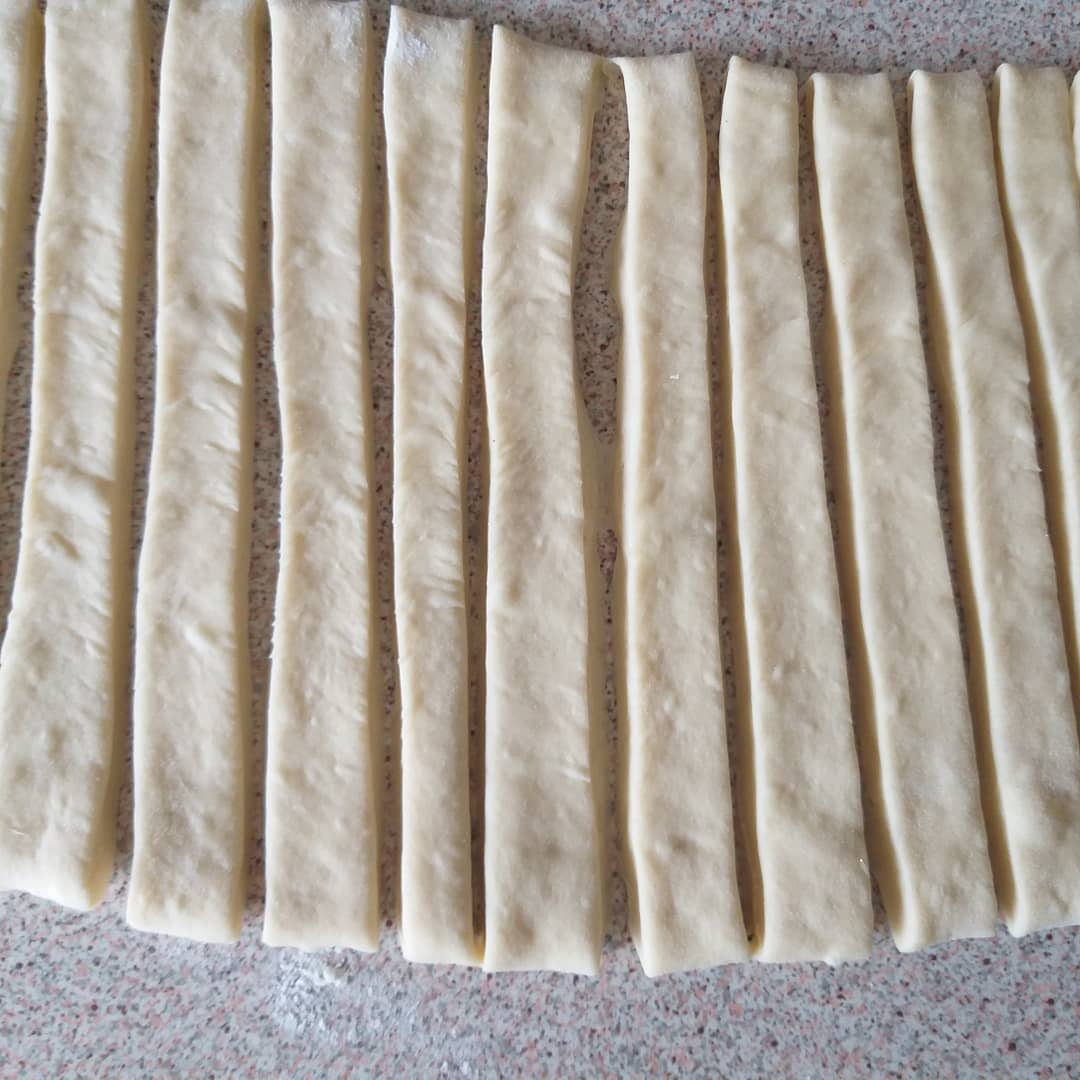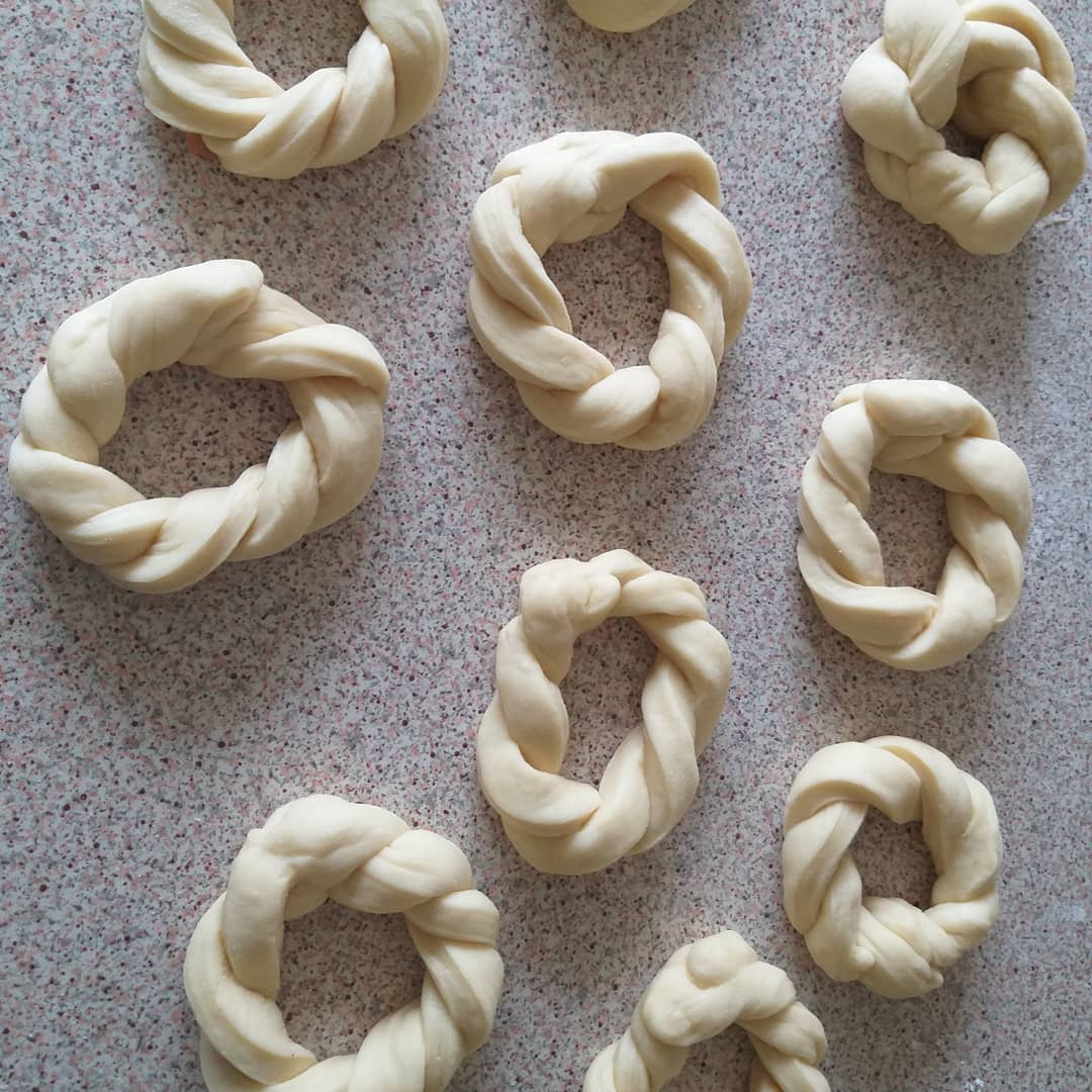 نجمع العجينة بالحليب دافي والعجينة تكون لينة ونخليها ترتاح وتيضاعف الحجم تعها واحد نصف ساعة