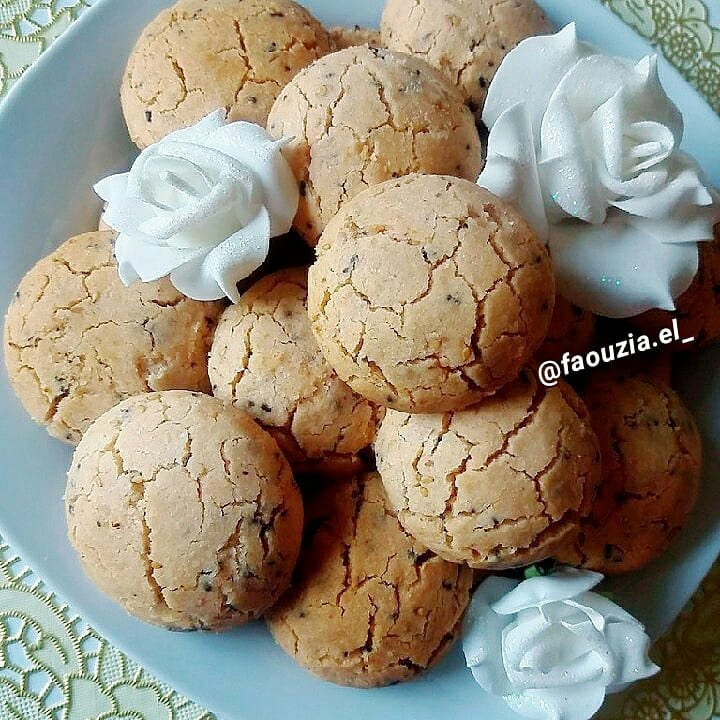 نبدأ بالزيت والسكر وجميع المكونات نخلط جيدا ثم نضيف الدقيق بالتدريج حتى نحصل على عجين متماسك لكن في نفس الوقت إذا ضغطنا عليه يتفتت ، ثم نشكل منه كويرات نضعها في صنية الفرن ونتركها ترتاح مدة 10 دقائق ثم ندخلها الفرن ساخن مسبقا على درجة حرارة 180 نشعل من فوق حتى تتشقق ثم نشعل من تحت ونتركها مدة لا تتعدى 15 دقيقة ، بعدما نخرجها من الفرن نتركها في الصينية حتى تبرد تماما ( لا نحركها وهي مازالت ساخنة لأنها ستتفتت )