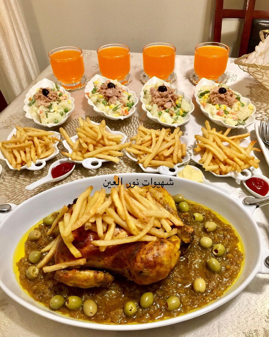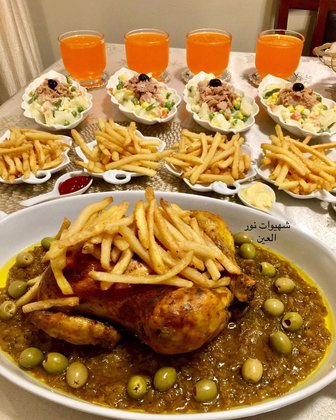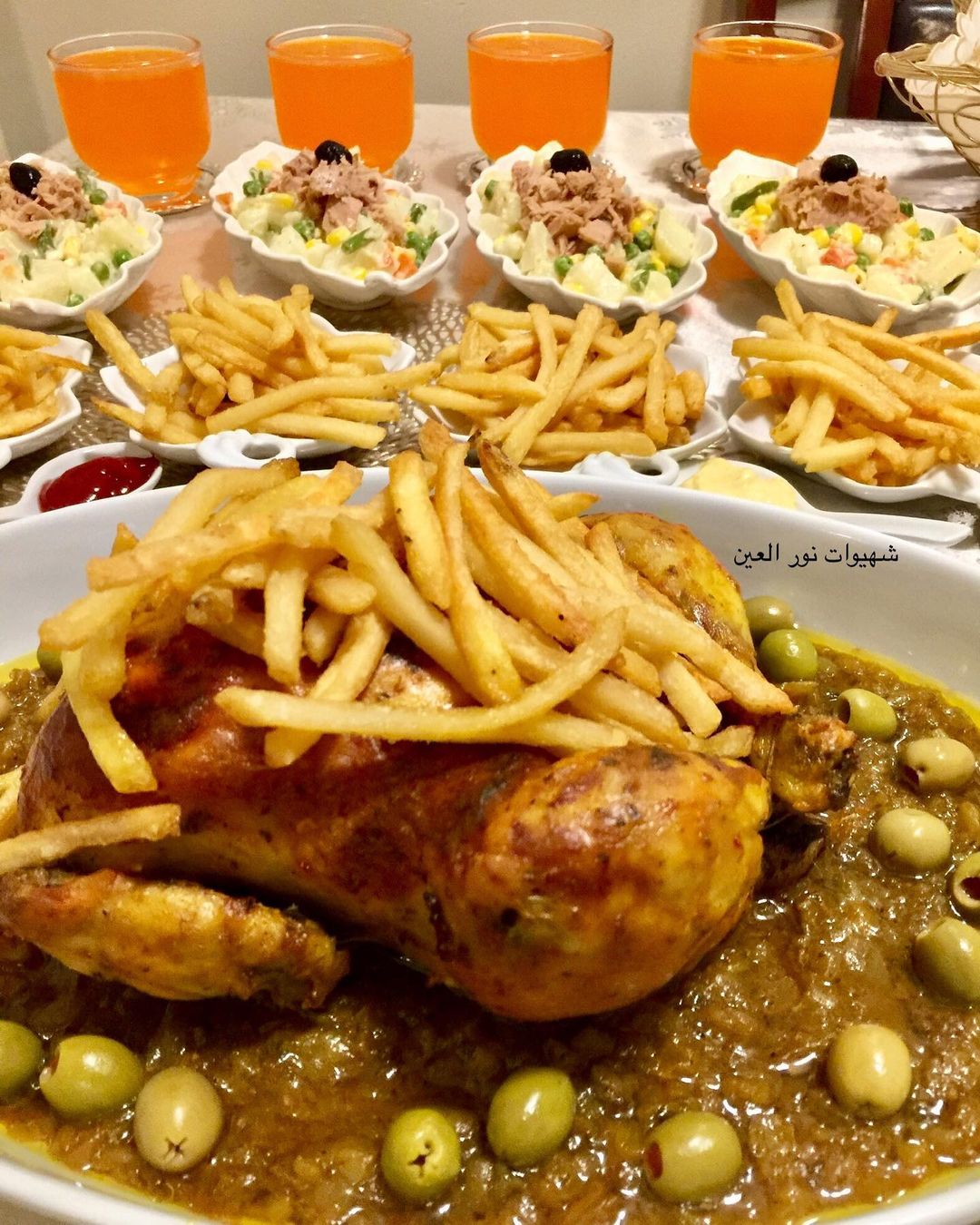 و ديك البصلة نزيدولها زيت نباتية و نخليوها تشحر حتا تنشف من الماء يبقى فقط الزيت ممكن اضافة الزيتون