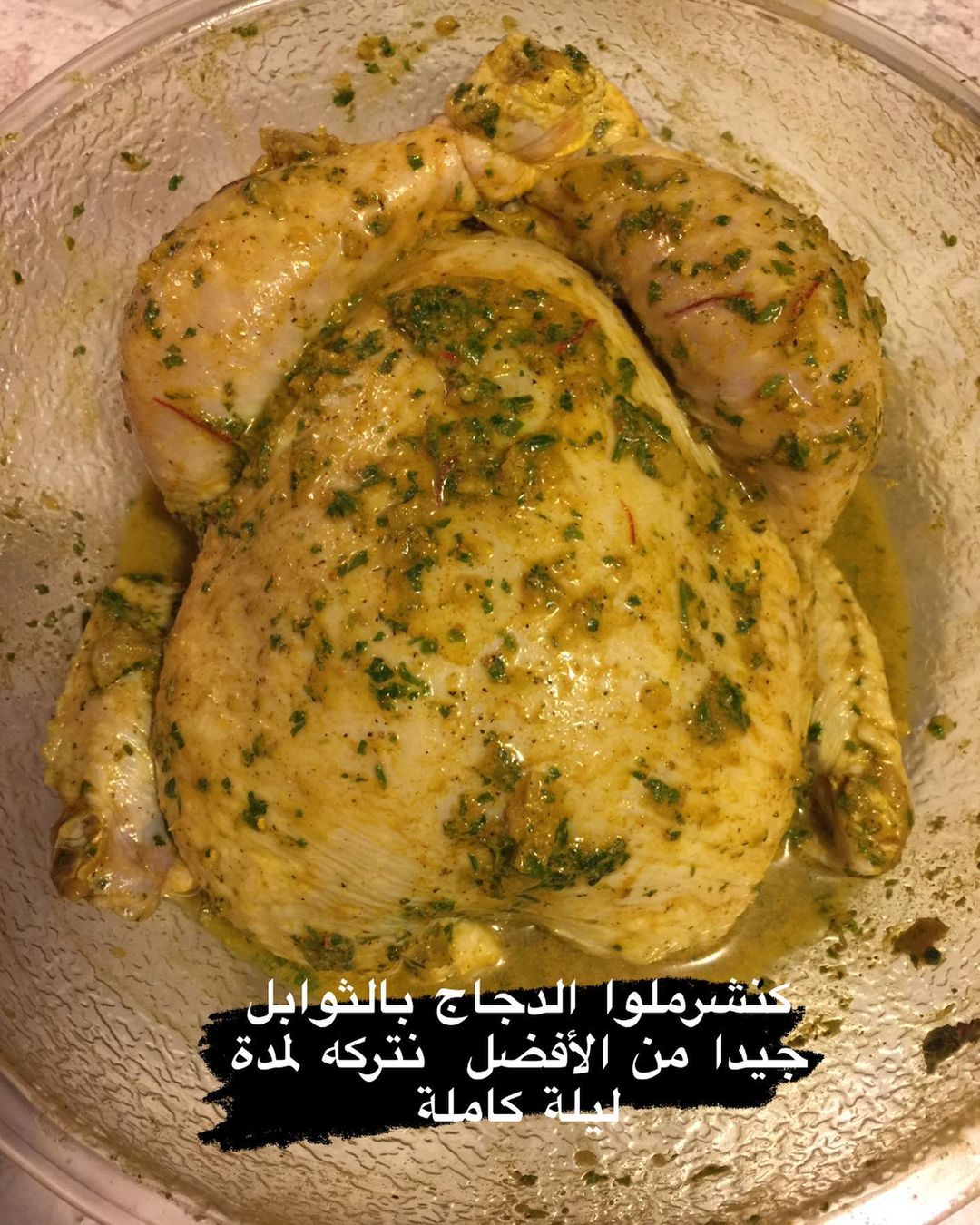 كنشرملو الدجاج بالتوابل و نربطو ليها رجيلاتها من الأحسن تبات فالشرمولة