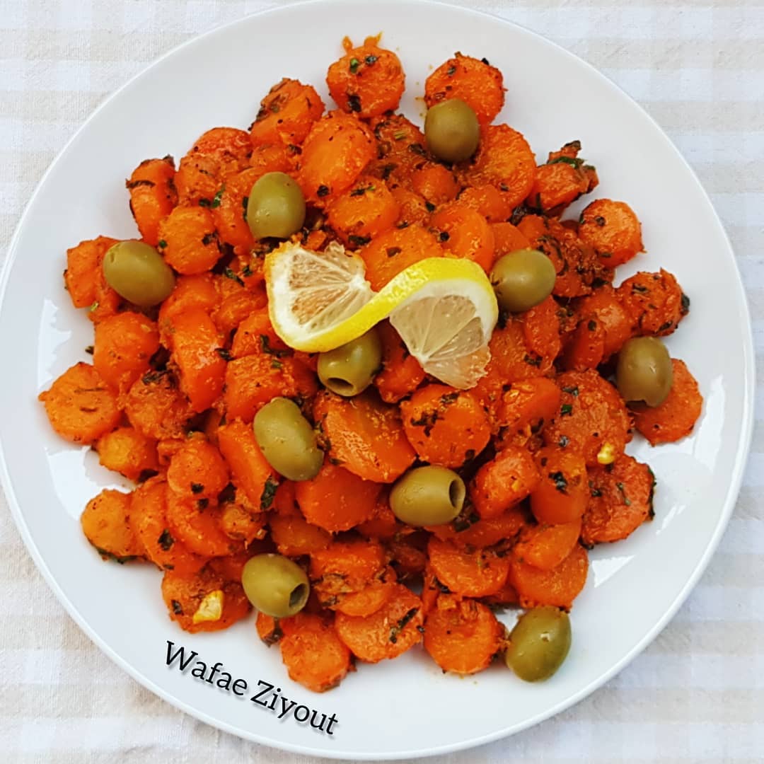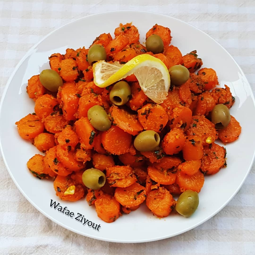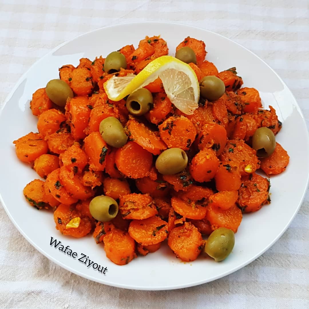 نصف كيلو جزر قشرتو وغسلتو وسلقتو في الماء و الملح، في مقلاة وضعت زيت الزيتون قزبر و بقدونس مفرومين، 3فصوص ثوم محكوكين، هريسة، حامض مصير، عصير الحامض كمون، تحميرة، خرقوم، قليل من الملح والفلفل الأسود ،كنشحر المكونات على نار هادئة، ونضيف الجزر لي صفيتو من الماء وندمجو مع شرمولة حتى ينساجمو