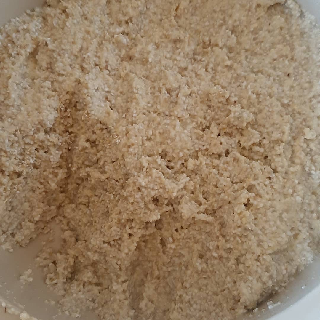 وفي صباح نضيف ليها نصف كاس زيت زيتون وملعقة صغيرة خميرة خبز مذوبة في قليل من ماء وكاس سميد ديال حرشة