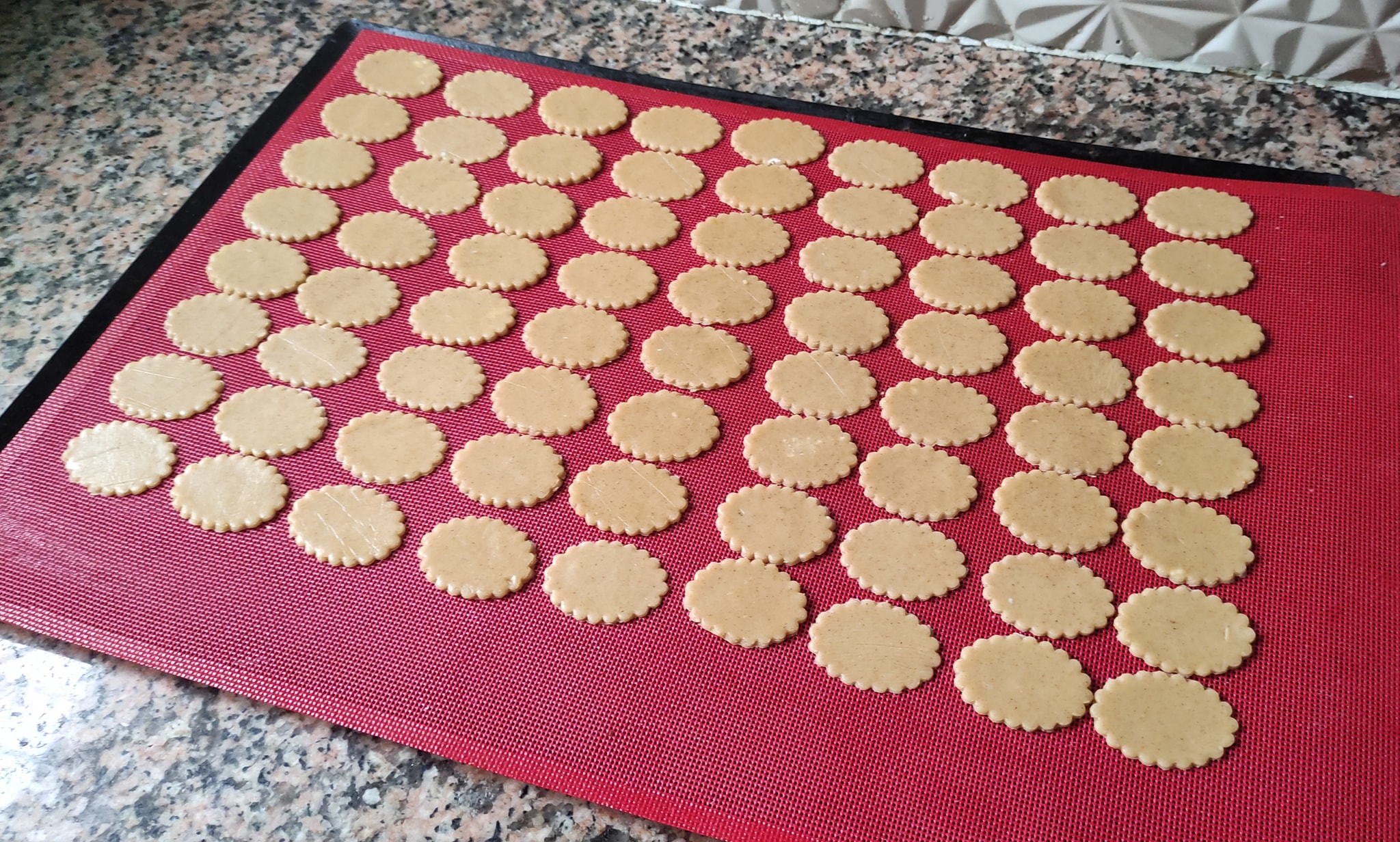 نبسط عجين الصابلي تكون رقيقة و نضعها فوق مفرش سيلباط هو لي كنطيبو فوق الصابلي باش كيعطينا داك الشكل لي فالصور