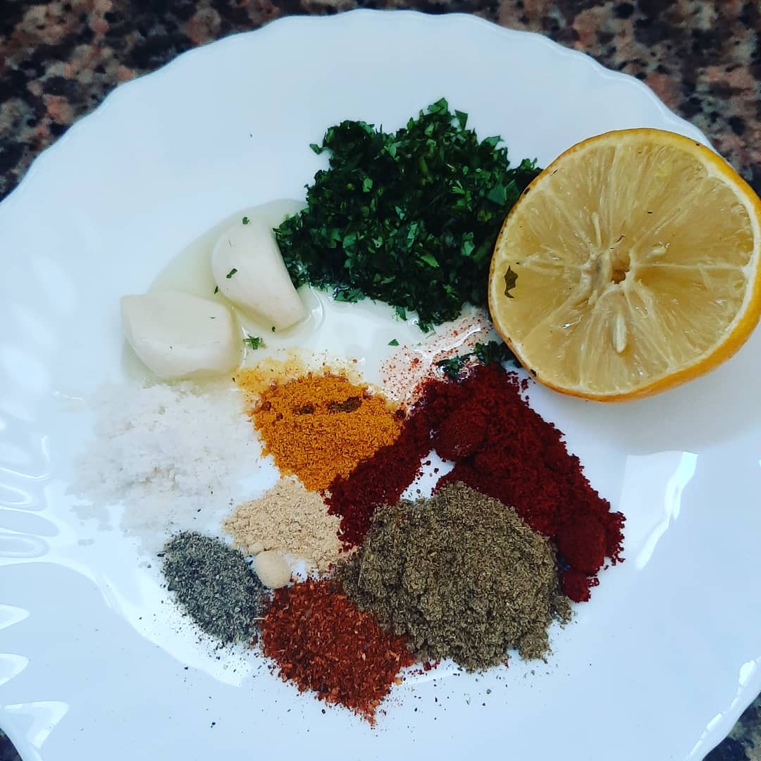 (ملح ابزار سكنجبير خرقوم تحميرة كمون سودانية اختيارية حامض قزبور تومة زيت زيتون )