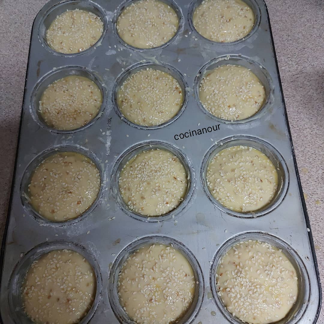 نخلط الكل مزيان بالخلاط اليدوي ونعمر بيه قوالب الكب كيك بعدما نكون دهنتهم بالزبدة والدقيق ونخليهم يخمرو وندهنهم بالبيض ونرش عليهم الزنجلان وندخلهم الفرن يطيبو على درجة حرارة 180