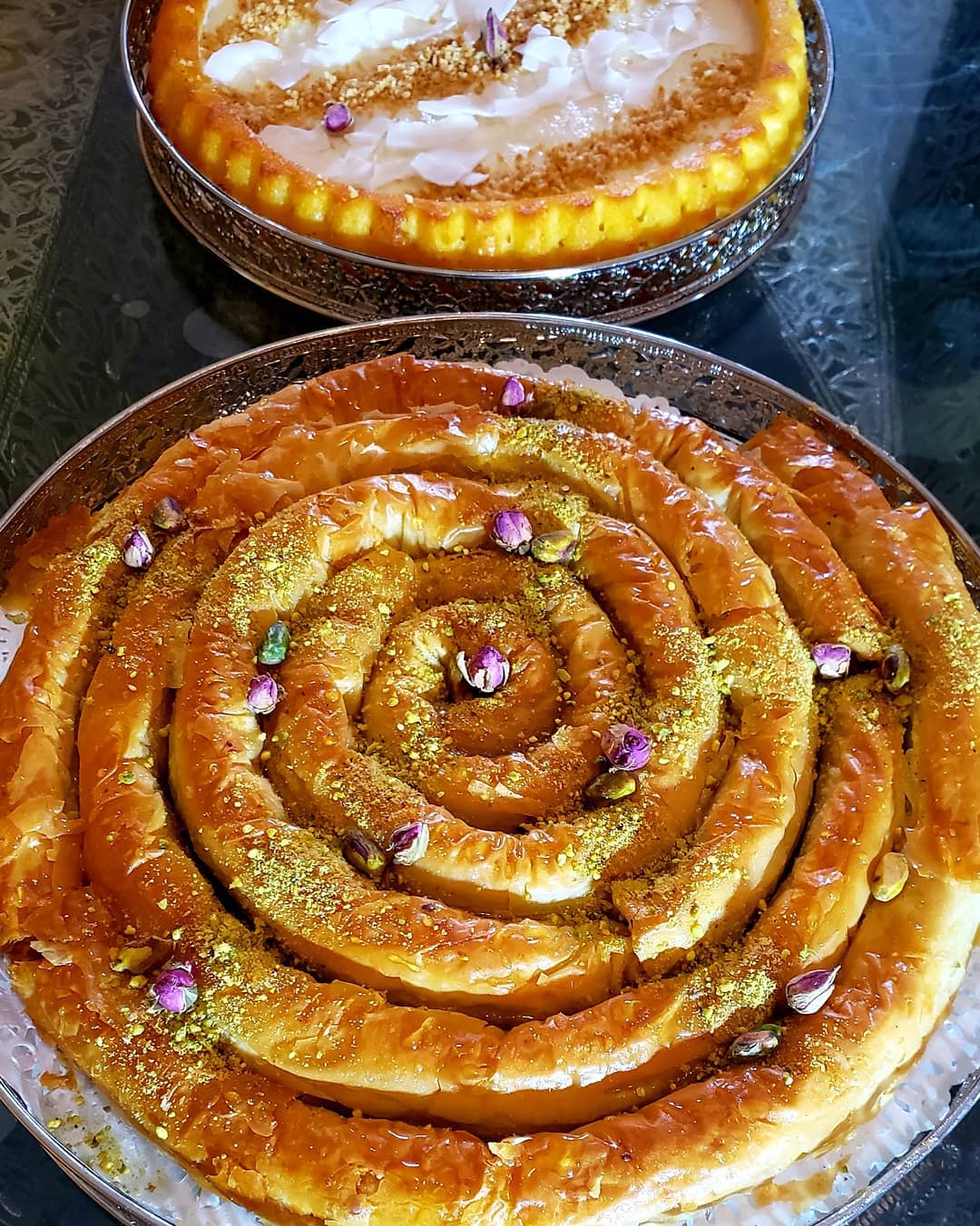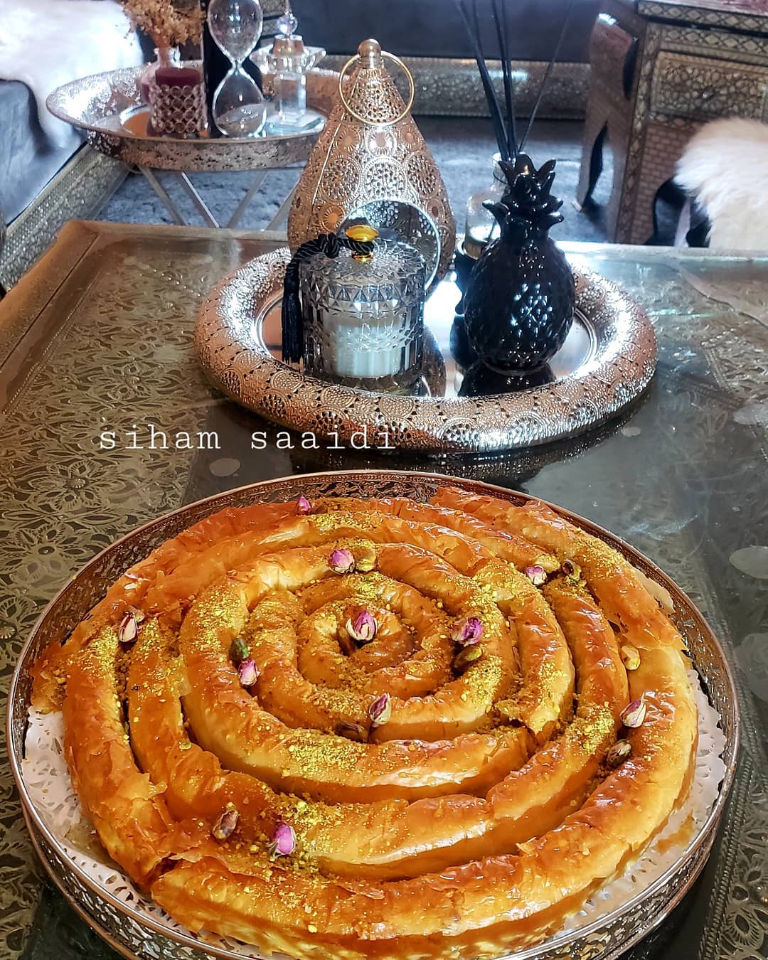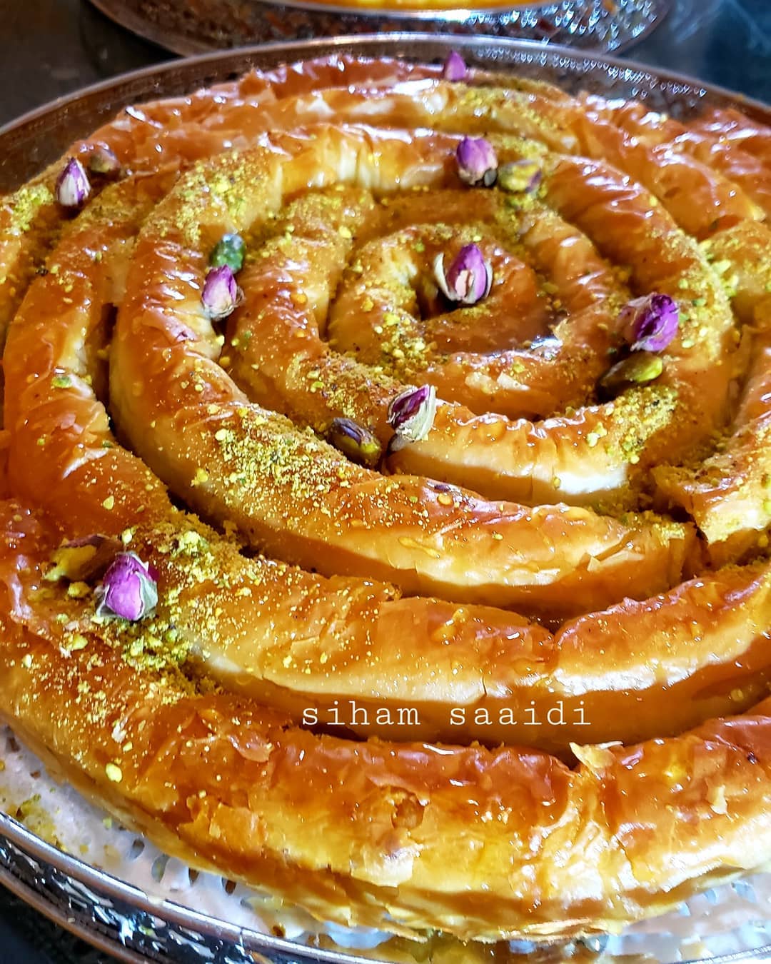 من بعد ما تحمر نسقي المحنشة بالعسل وتزين حسب الدوق
