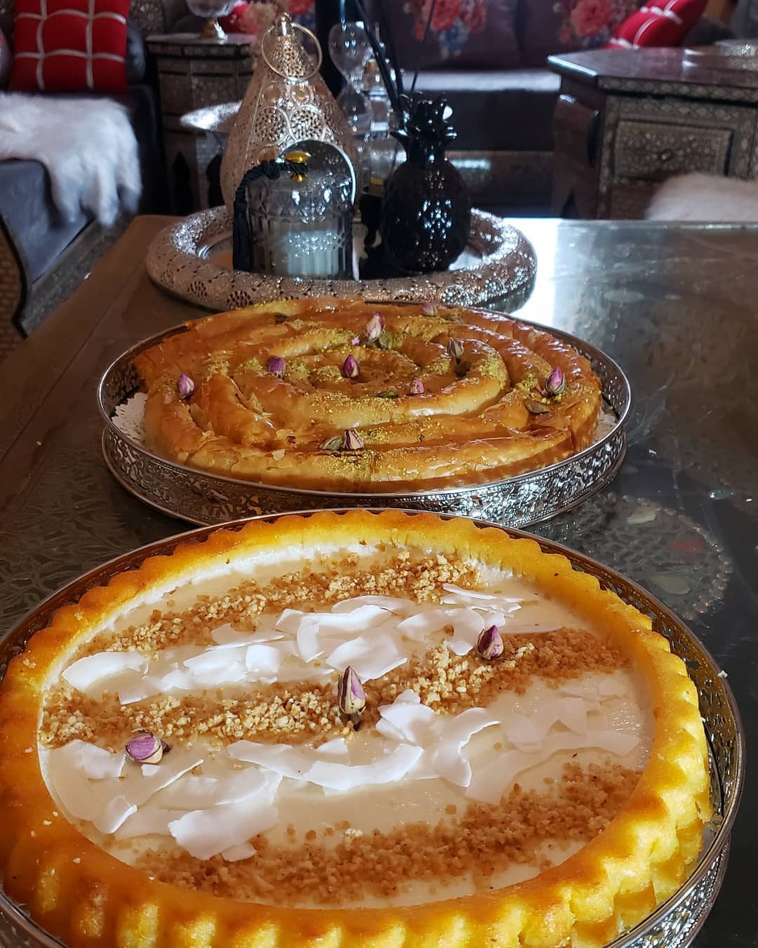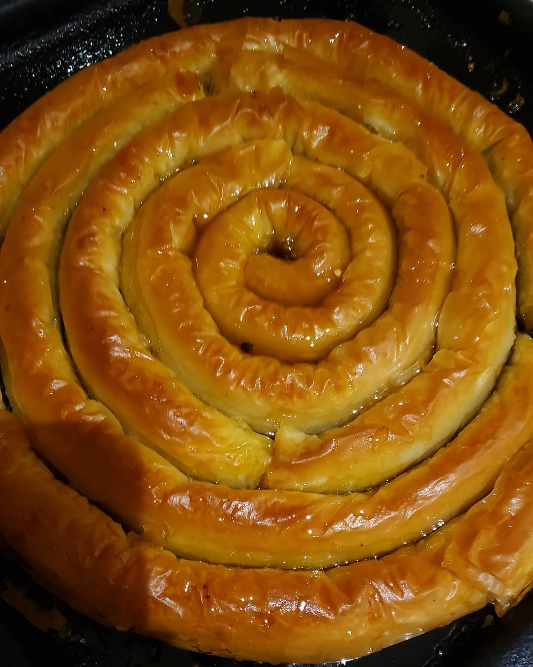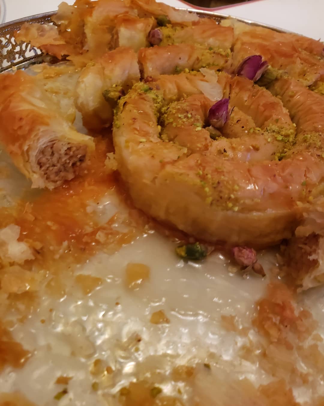 من بعد ما تحمر نسقي المحنشة بالعسل وتزين حسب الدوق
