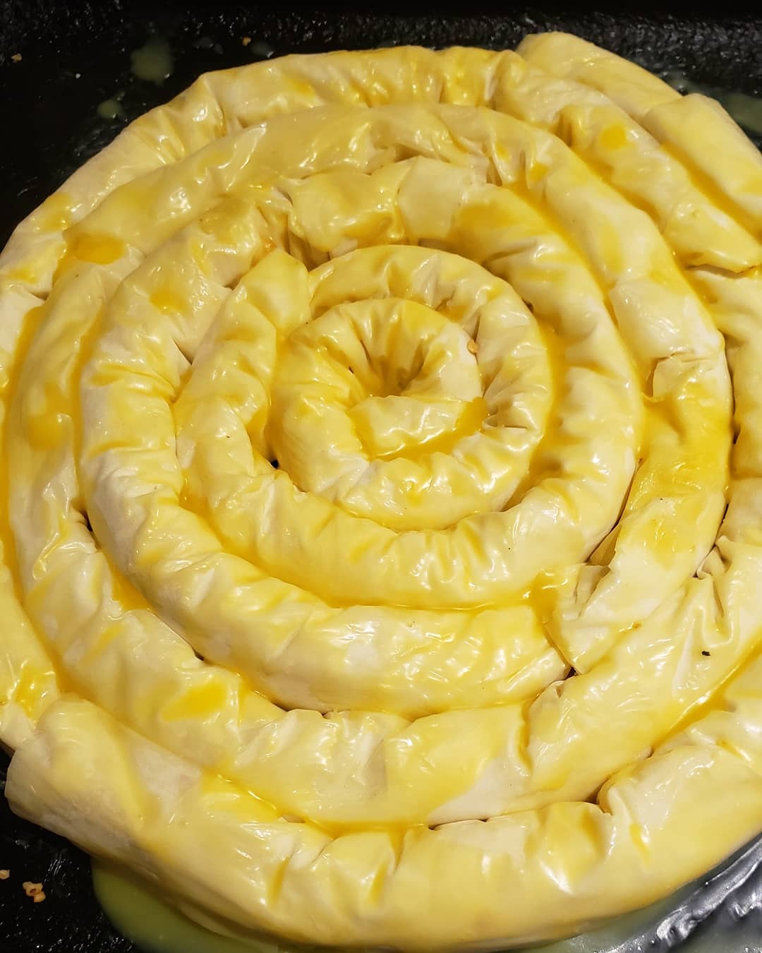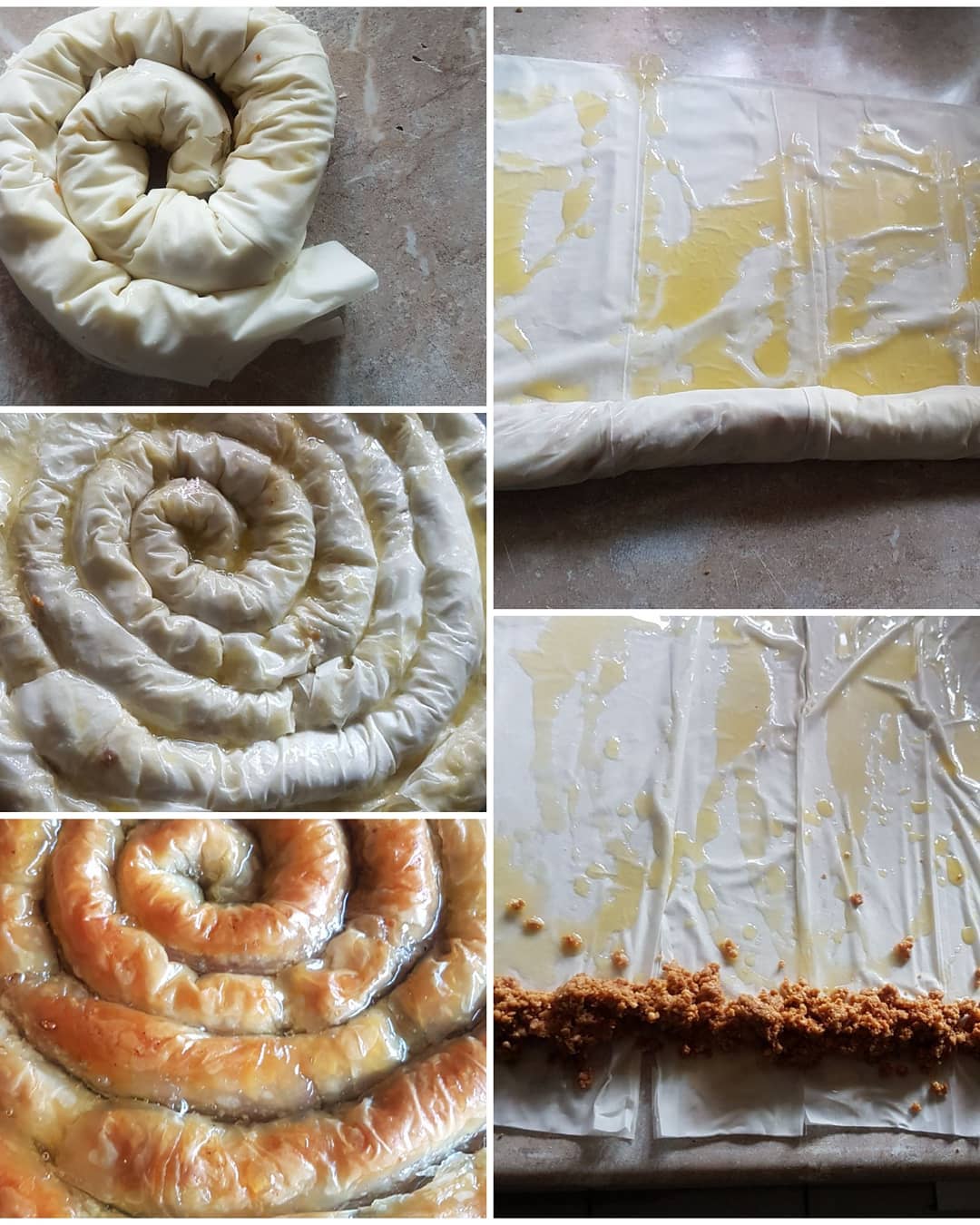 ثم نعمل حشوة كاوكاو في جانب كما في الصور تم نلف على شكل حلزون و هكذا نستمر حتى ننتهي من الكمية