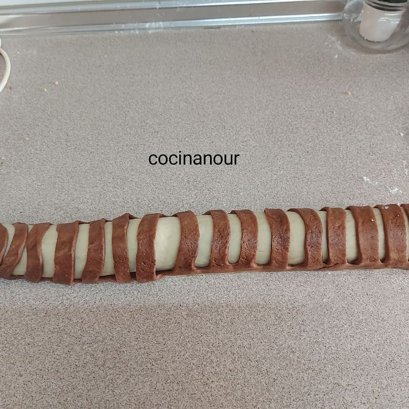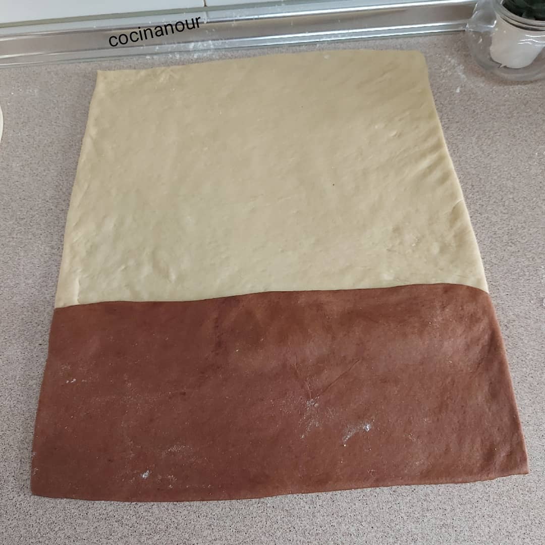 ونخليهم يخمرو تم نشكلها وندهنها بالنوتيلا ونرش اللوز ونشكلها كما في الصور ونخليها تخمر وندهنها بأصفر البيض مخلط بالفاني وندخلها فرن على 170 درجة وبالصحة والراحة