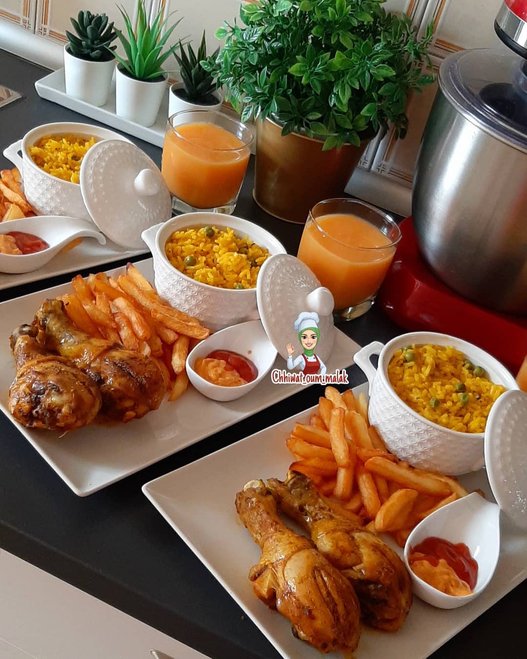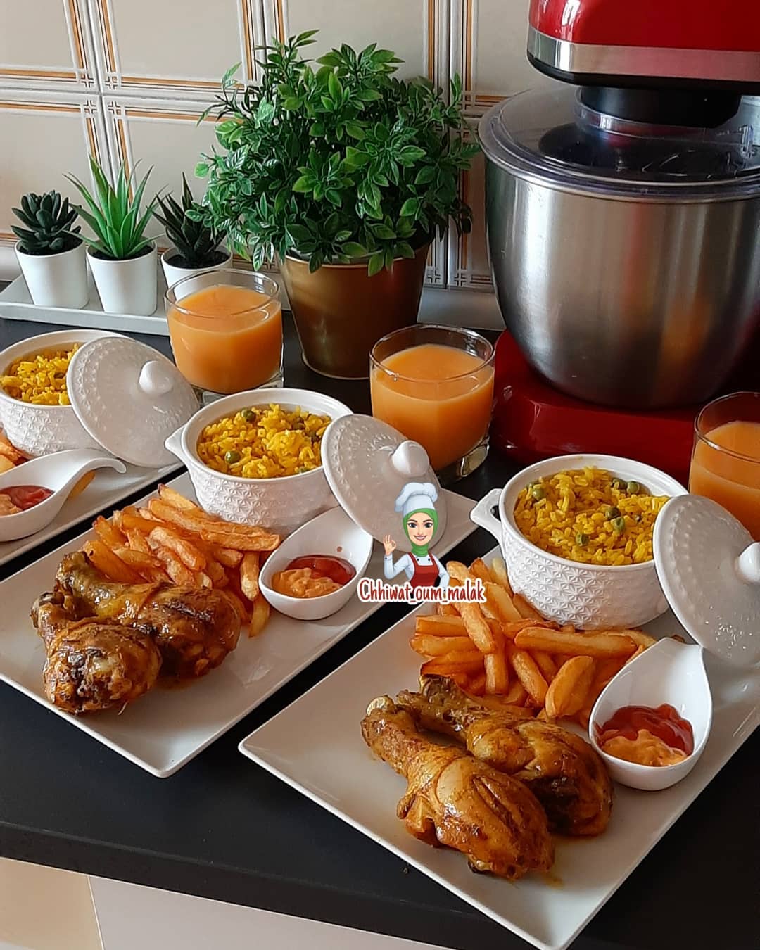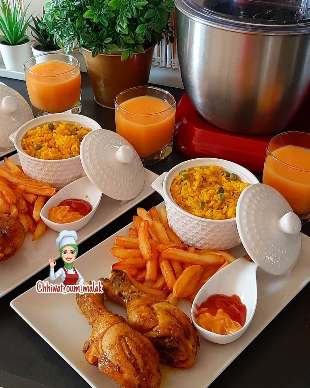 أفخاد الدجاج محمرين مرفوقين بالروز