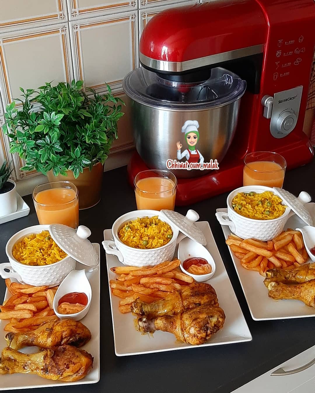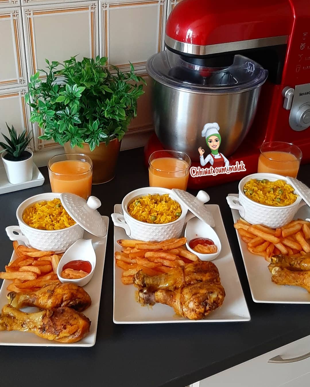 نشحرو البصل و الثوم حتى يتحمرو ثم نضيف الطماطم و نضيف جلبانة و الجزر و التوابيل و نزيدو الروز و نضيف 4كيسان ماء و نشدو على الروز يطيب بلا منحركوه حيت كيتعجان الروز