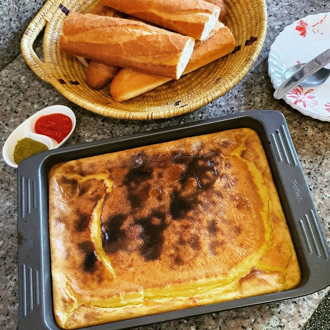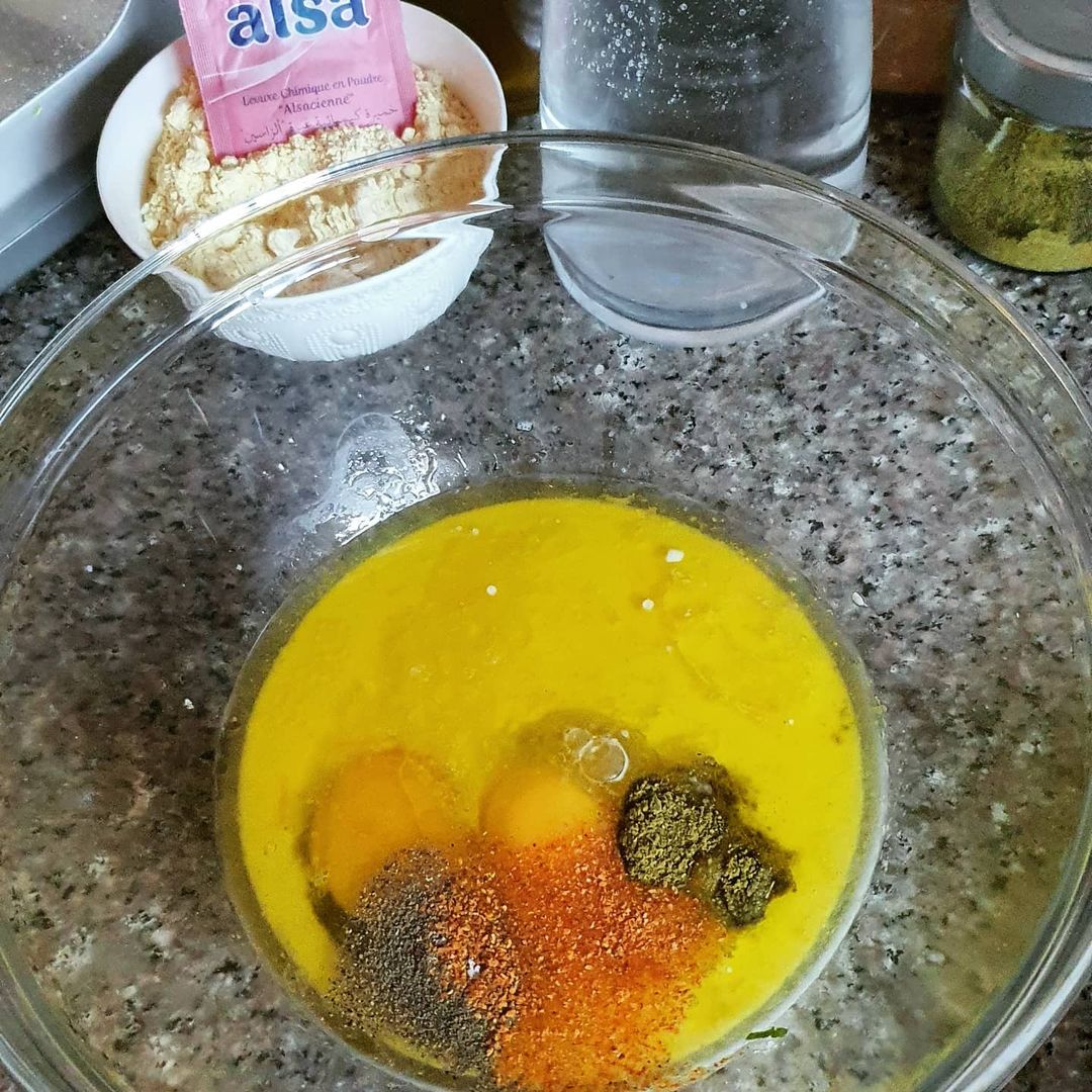 في اناء وضعت بيض زيت وحليب ملح وتوابل وخلط جيدا وضفت دقيق حمص بعد ما غربلتو وضفت خمارة وخلط وضفت ماء شوية شوية وخديت طاوة مدهونة بالزيت وصفيت خليط في صفاي وضفت في طاوة ودخلت للفرن ساخن من فوق وتحت على نار متوسطة حتى ينشف ويتحمر الوجه وبصحة وراحة يقدم وهوة ساخن مع باكيط وكمون وحار