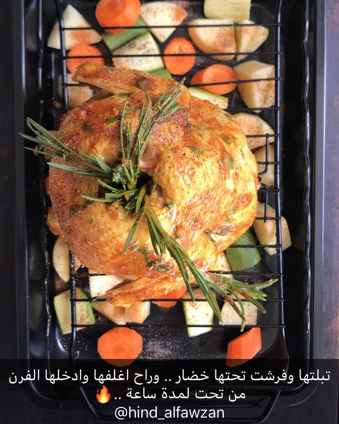 – تتبل فيها الدجاج .. من الخارج+ تحت الجلد قدر المستطاع+ من الداخل