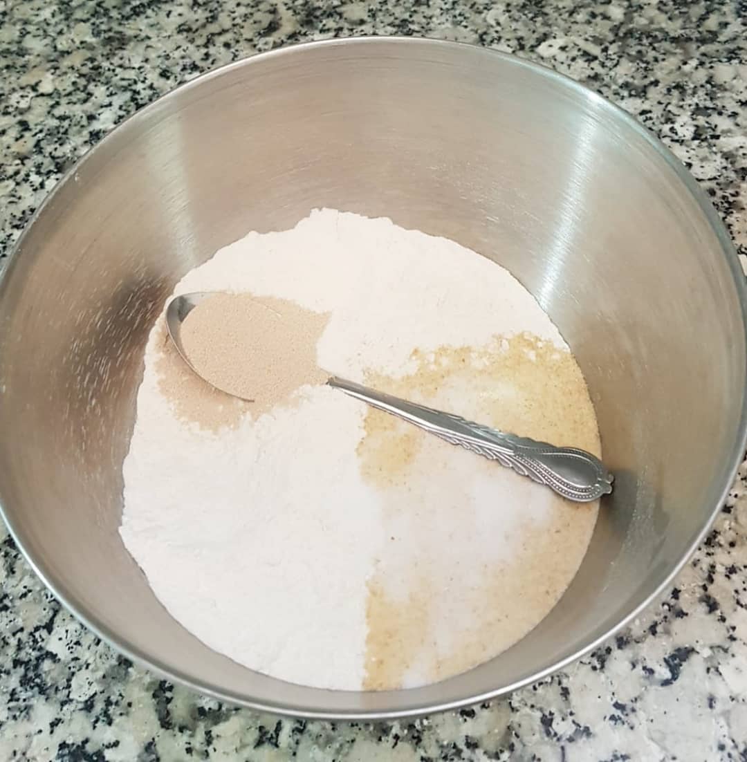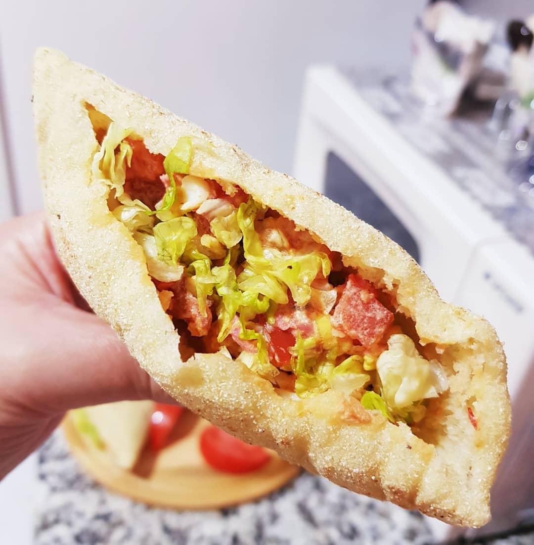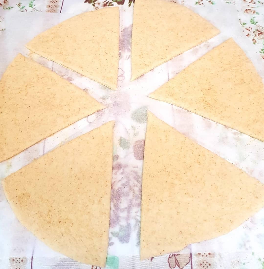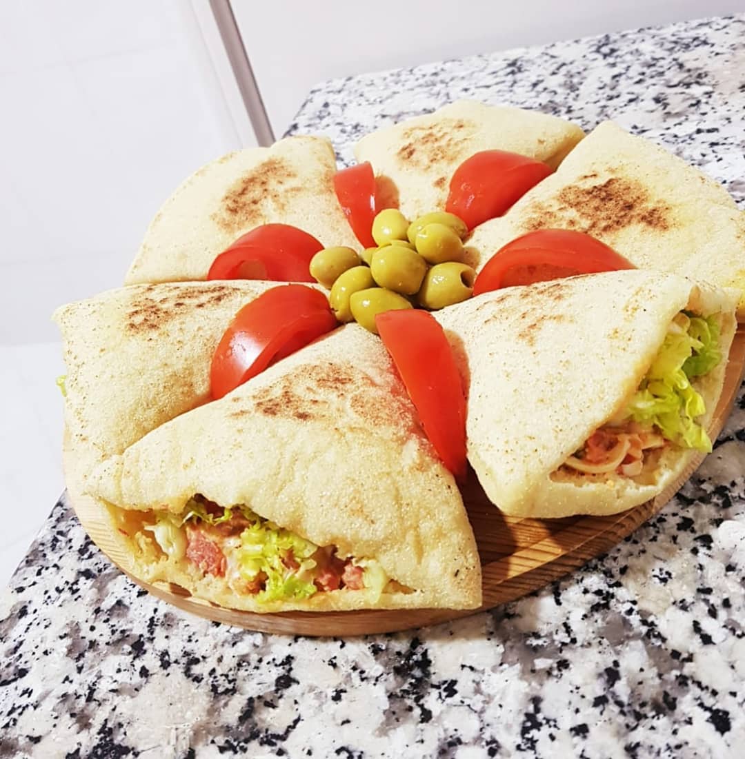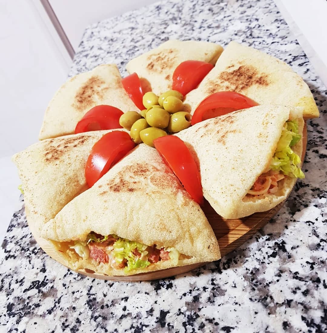 3كؤوس دقيق ابيض، كأس ونصف دقيق القمح الكامل، ملعقة صغيرة ملح، ملعقة كبيرة خميرة الخبز،نعجنو بماء دافئ ونتركه يختمر حتى يتضاعف حجمه ،نشكلو منو 3كرات نطلقوهوم رقاق بمساعدة دقيق القمح الكامل ونقطعو مثلثات بقطاعة البيتزا ،نتركوهوم يختمرو نصف ساعة ثم نطيبوهوم فمقلاة ناشفة على نار عالية ،كي نحطوهوم فالمقلاة نقلبوهوم قبل مايتشكلو الفقاعات حتى يتحمرو وينتافخو
