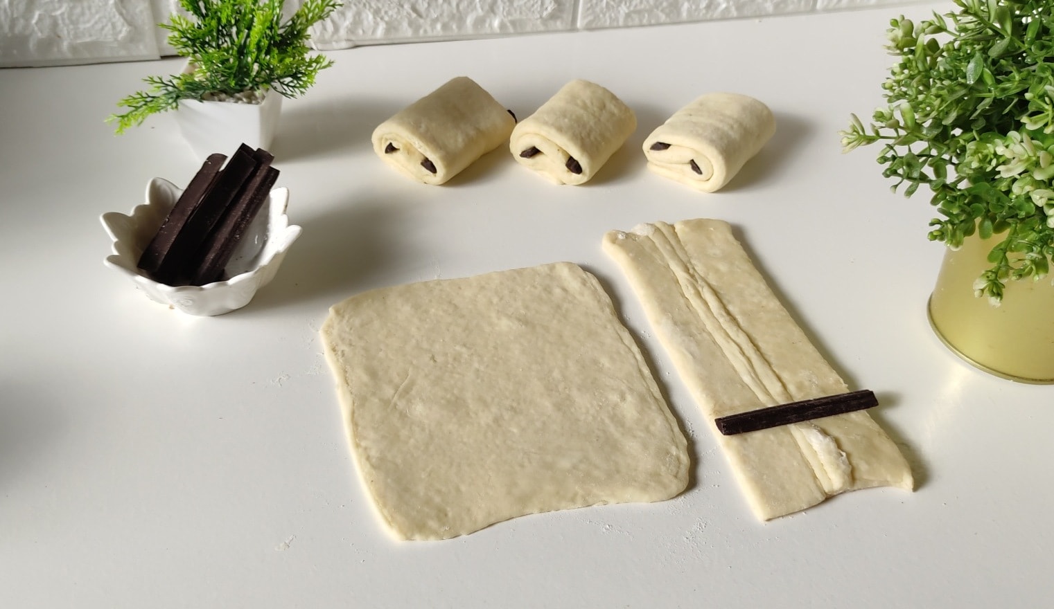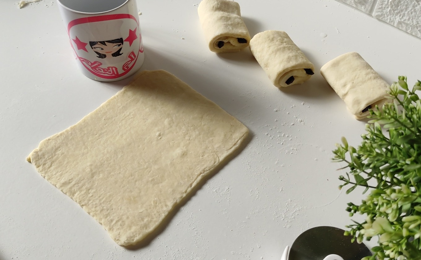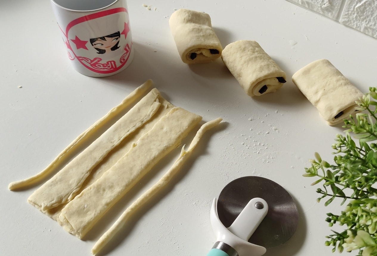 من بعد ما نكملو الكمية ناخدو اول وحدة و نبسطها بدلاك متكونش رقيقة الى بغينا الطرواصة تجينا رقيقة كنقسموها على زوج اي كل وحدة نخرجو منها زوج كرواصات كيف الصورة راه كاينة بحجم كبير و حجم صغير