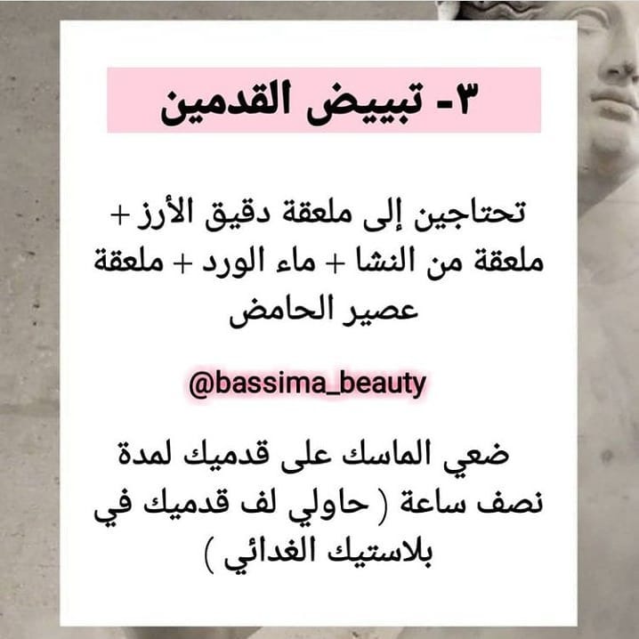 العناية بالبشرة • القسم الصحي تبييض و تفتيح لون القدمين Add Comment تبييض و تفتيح لون القدمين مكونات و طريقة تبييض و تفتيح لون القدمين في الصور اعلاه مرري الصور لمشاهدة مكونات و طريقة تفتيح و تبييض لون القدمين