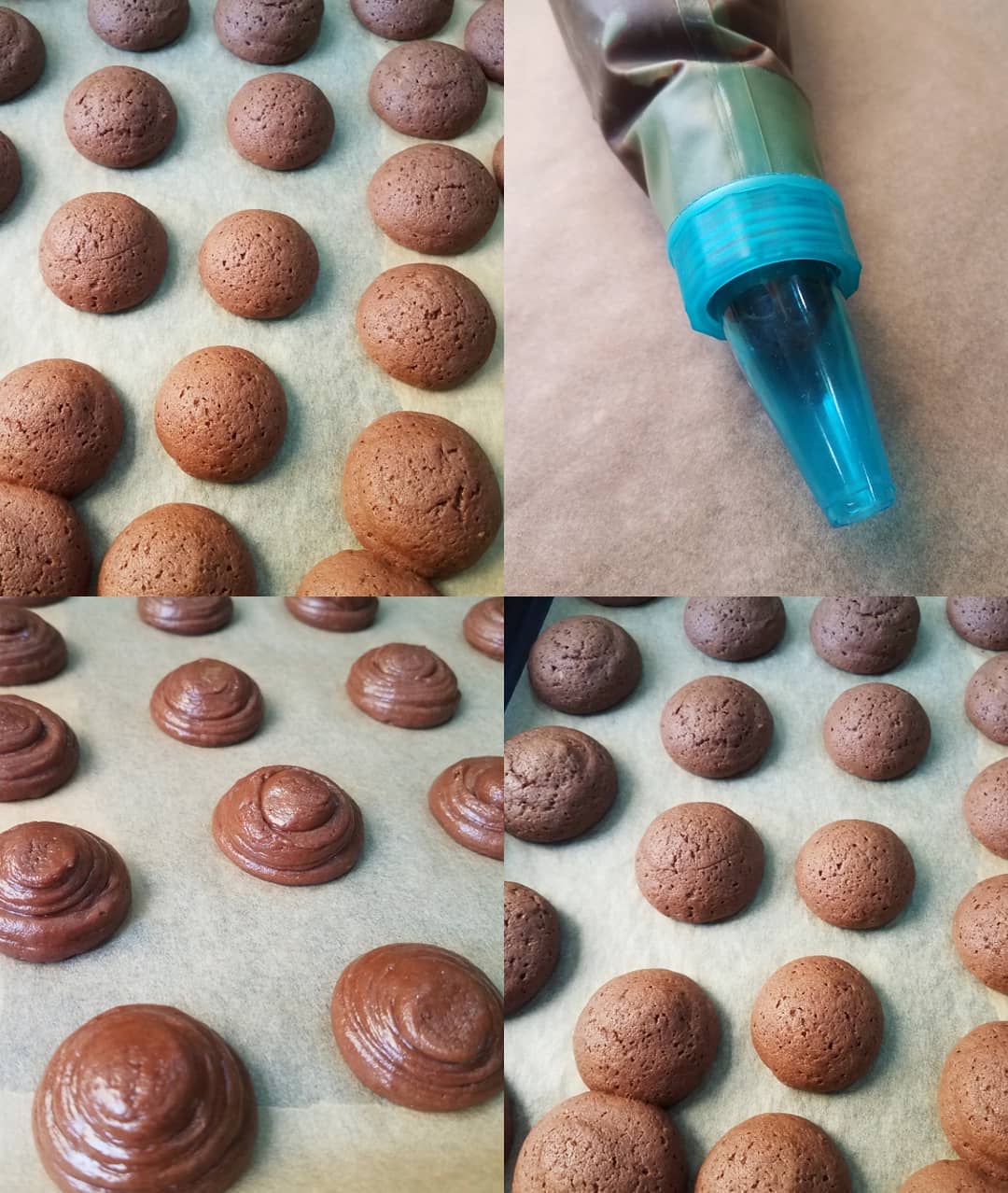 نضع العجينة في كيس حلواني ونشكل دوائر صغيرة متباعدة