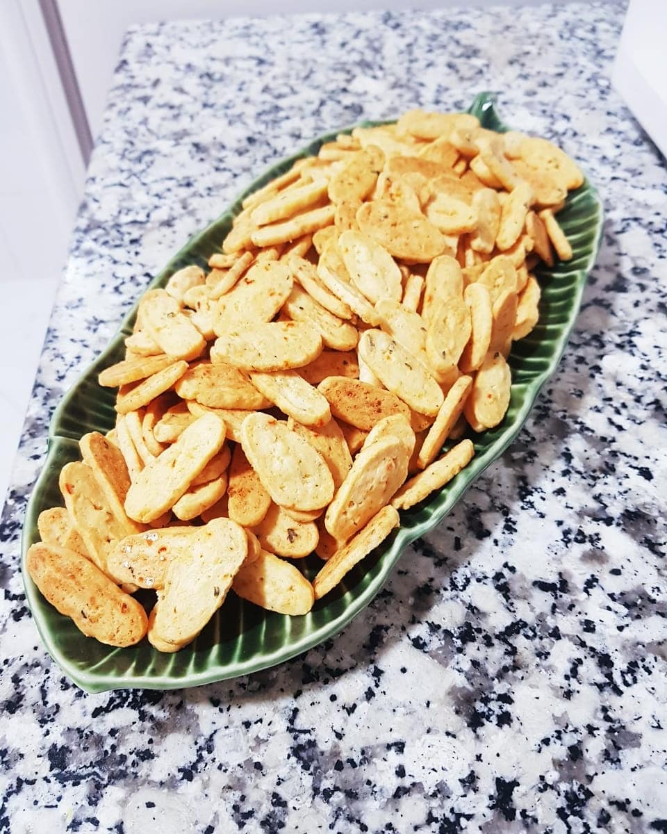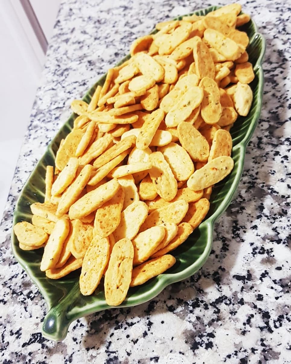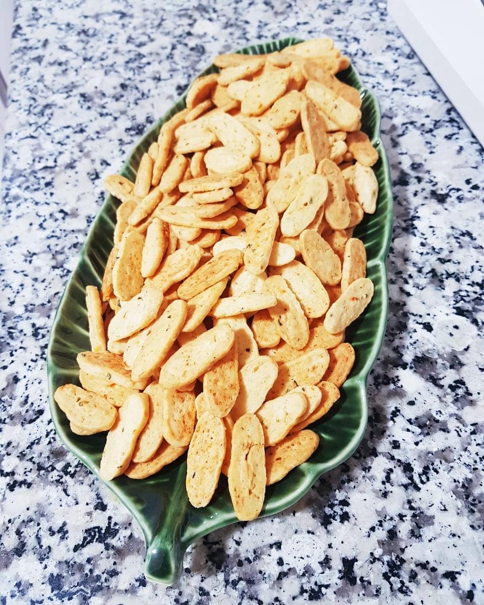 300غ دقيق ابيض نبسسوه ب150 غ زبدة و2 ملاعق كبار زيت، نضيفو رشة ملح وفلفل أسود وزعتر محكوك، نضيفو جبن أحمر (إيدام) محكوك رقيق وملعقة صغيرة هريسة حارة وملعقة صغير خميرة حلويات