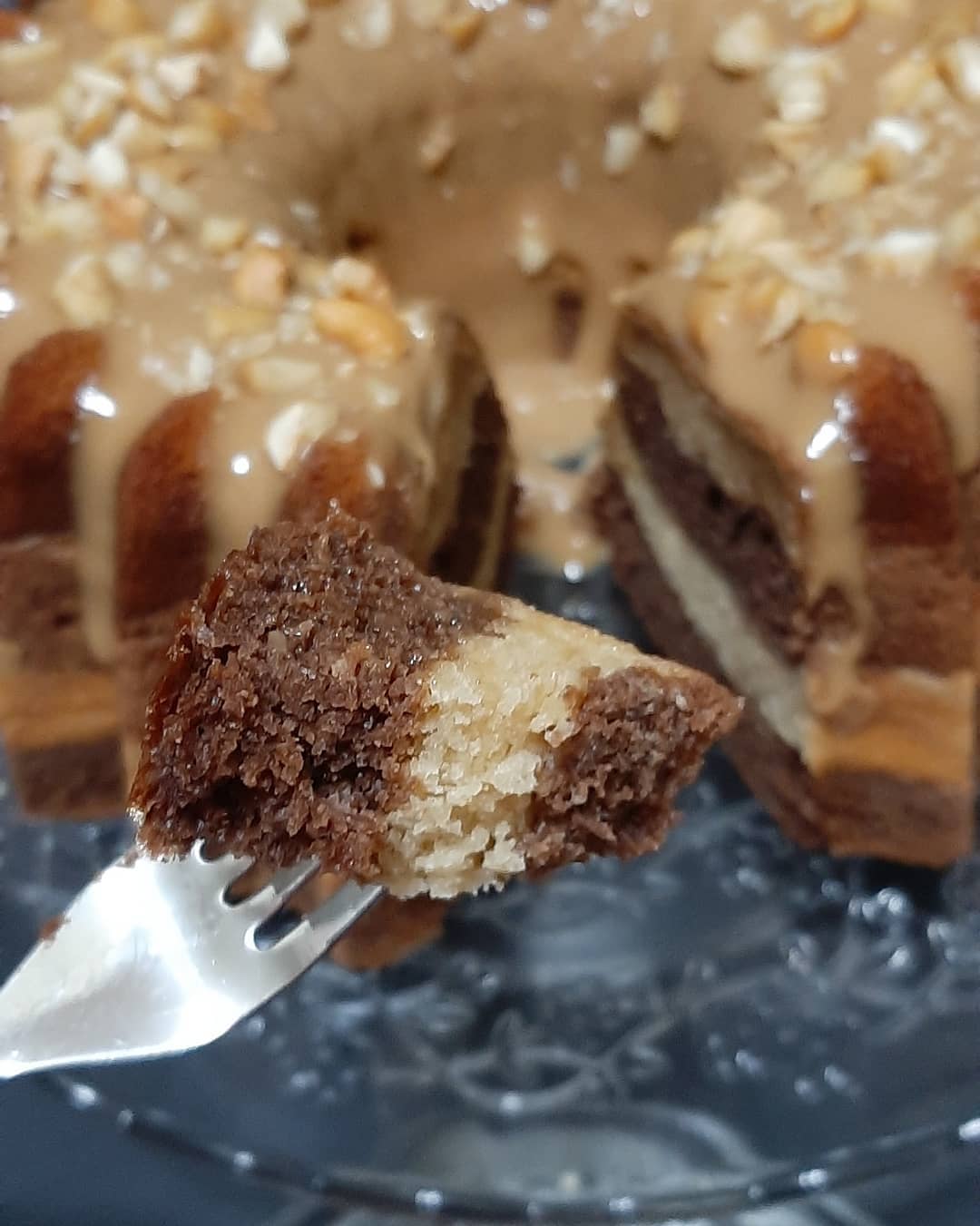 في اناء نخلط البيض،رشة ملح،سكر و فاني جيدا حتى يطلع ويتكاثف حجم البيض نضيف الزيت والحليب منخلطوش بزاف باش ميطحش لينا البيض ن ونقسمو الخليط الى نصفين واحد نضيفو ليه كاكاو و نسكافي ونخلط مزيان و ايضا الدقيق و الخميرة. 7غ
