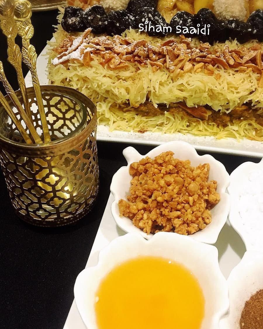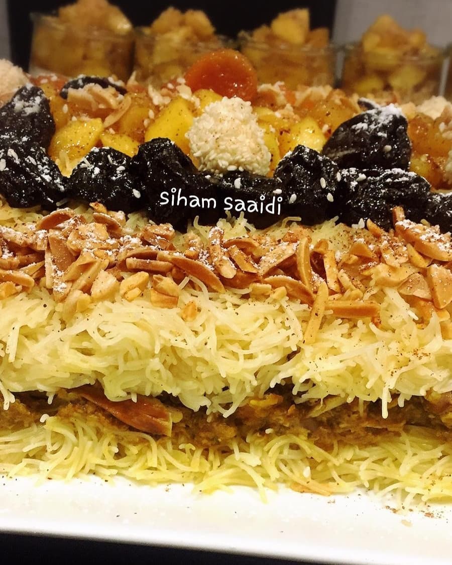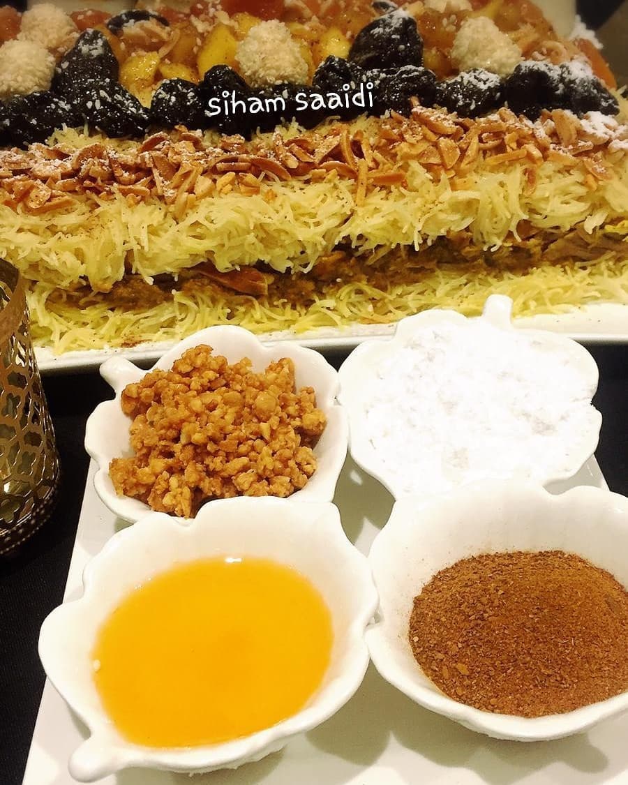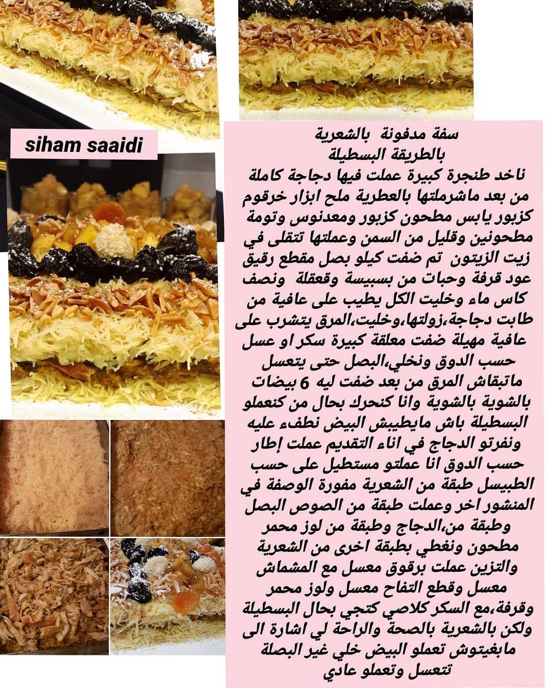 مقادير و طريقة تحضير سفة مدفونة بطريقة البسطيلة في الصور اعلاه