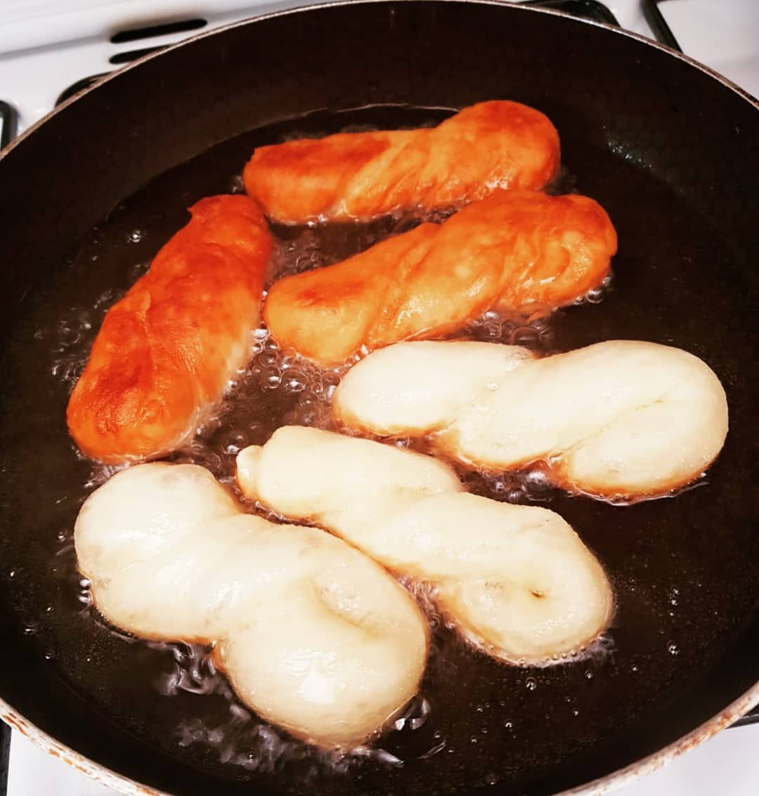 ونخليوه يختمر مرة اخرى تم نقليوه فزيت غزير يكون ساخن من قبل على حرارة متوسطة باش مايطيبش مخطوف