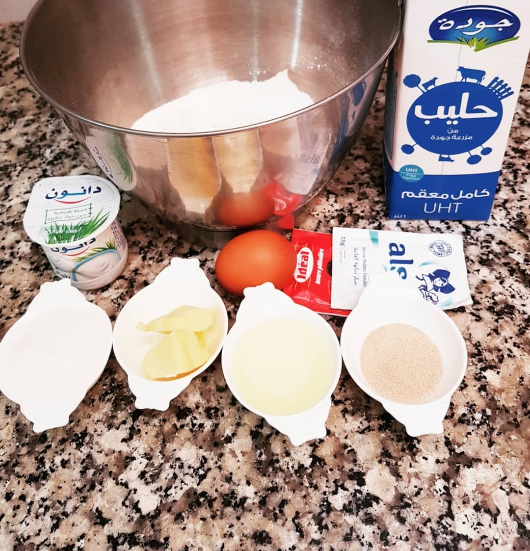 ملعقة كبيرة مملوءة من كل من : يوغورت طبيعي، سكر،زيت ،زبدة