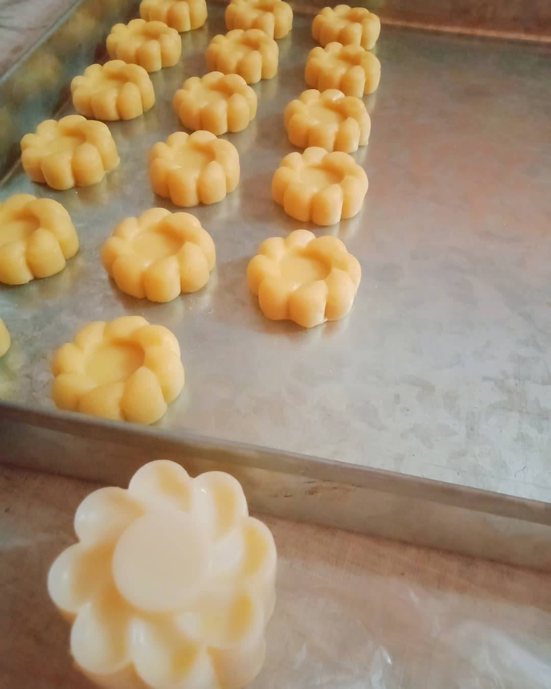 نضرب الكل جيدا ثم نضيف نصف كاس نشاء رشة صغير جدا خميرة( مانكثروش كي لا ينتفخ ) مبشور ليمون,
